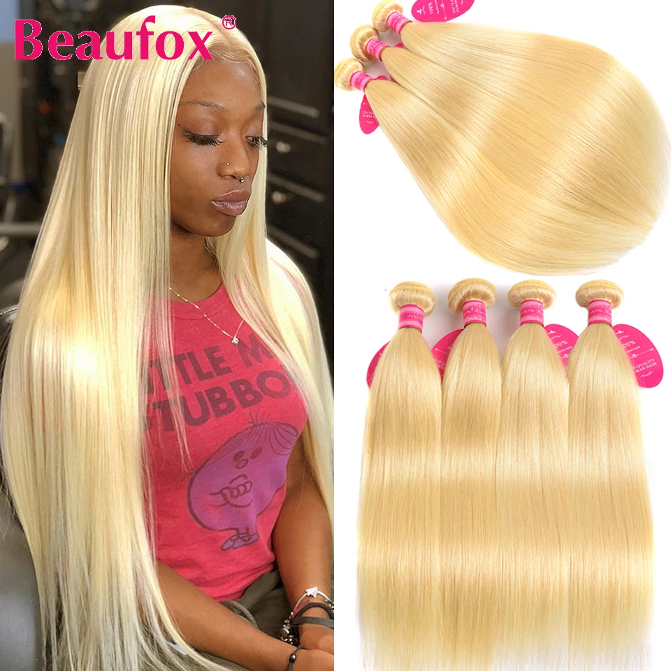 Beaufox 134 613 пряди бразильских волос, волнистые прямые пряди волос, 100% человеческие волосы без повреждений, пучки 613 светлых волос для наращивания