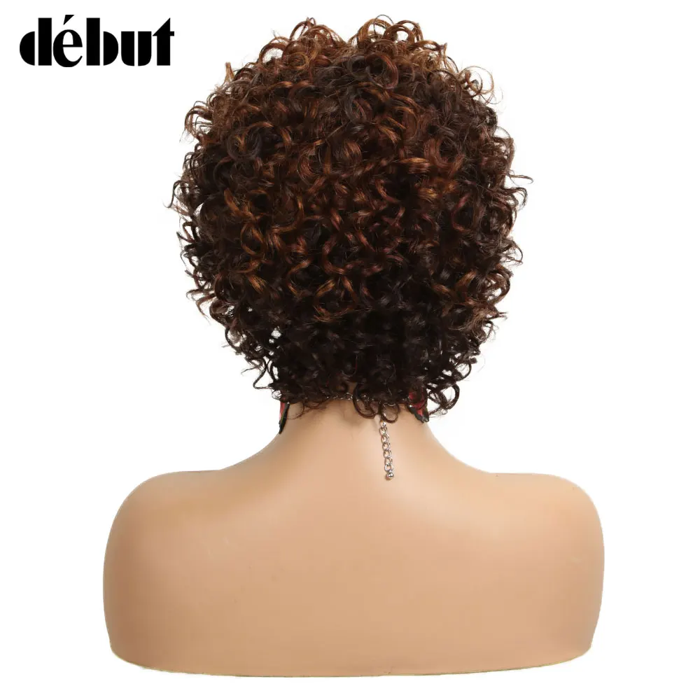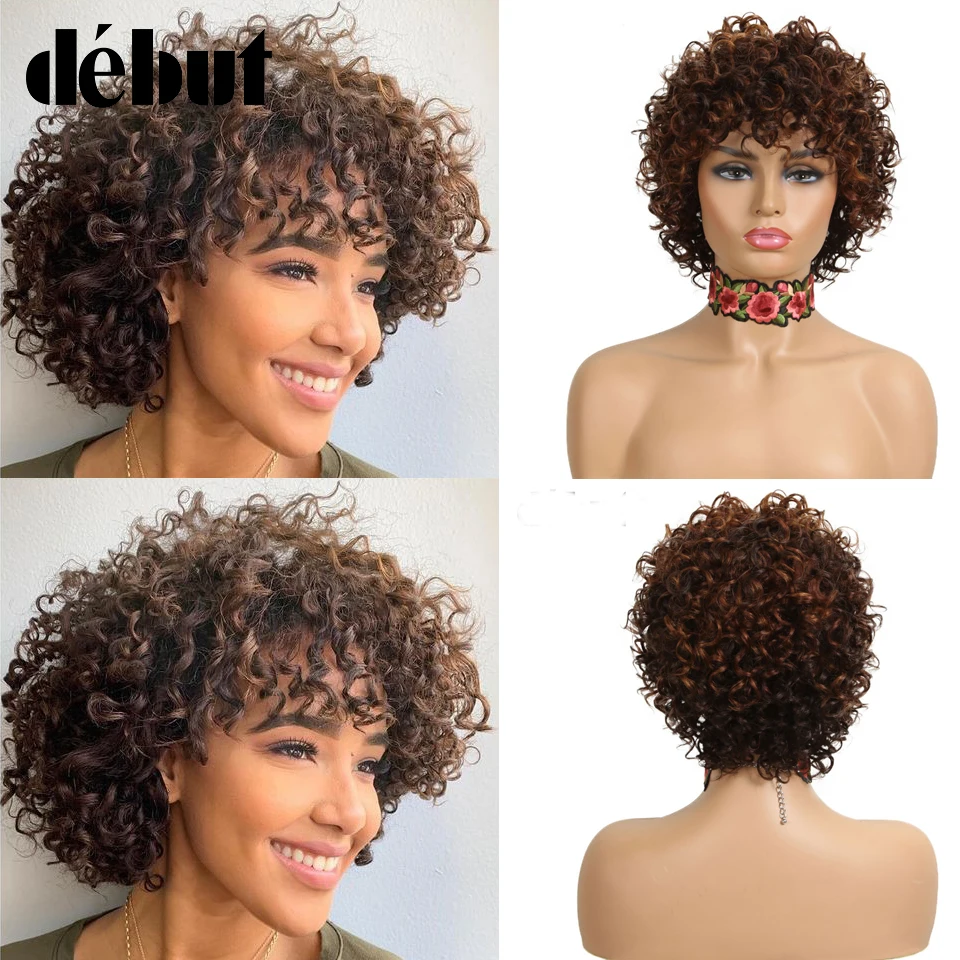 Дебютные дешевые красные человеческие волосы для чернокожих женщин, коричневые, бразильские Короткие вьющиеся парики с эффектом омбре, 99J Человеческие волосы Remy, машинные парики