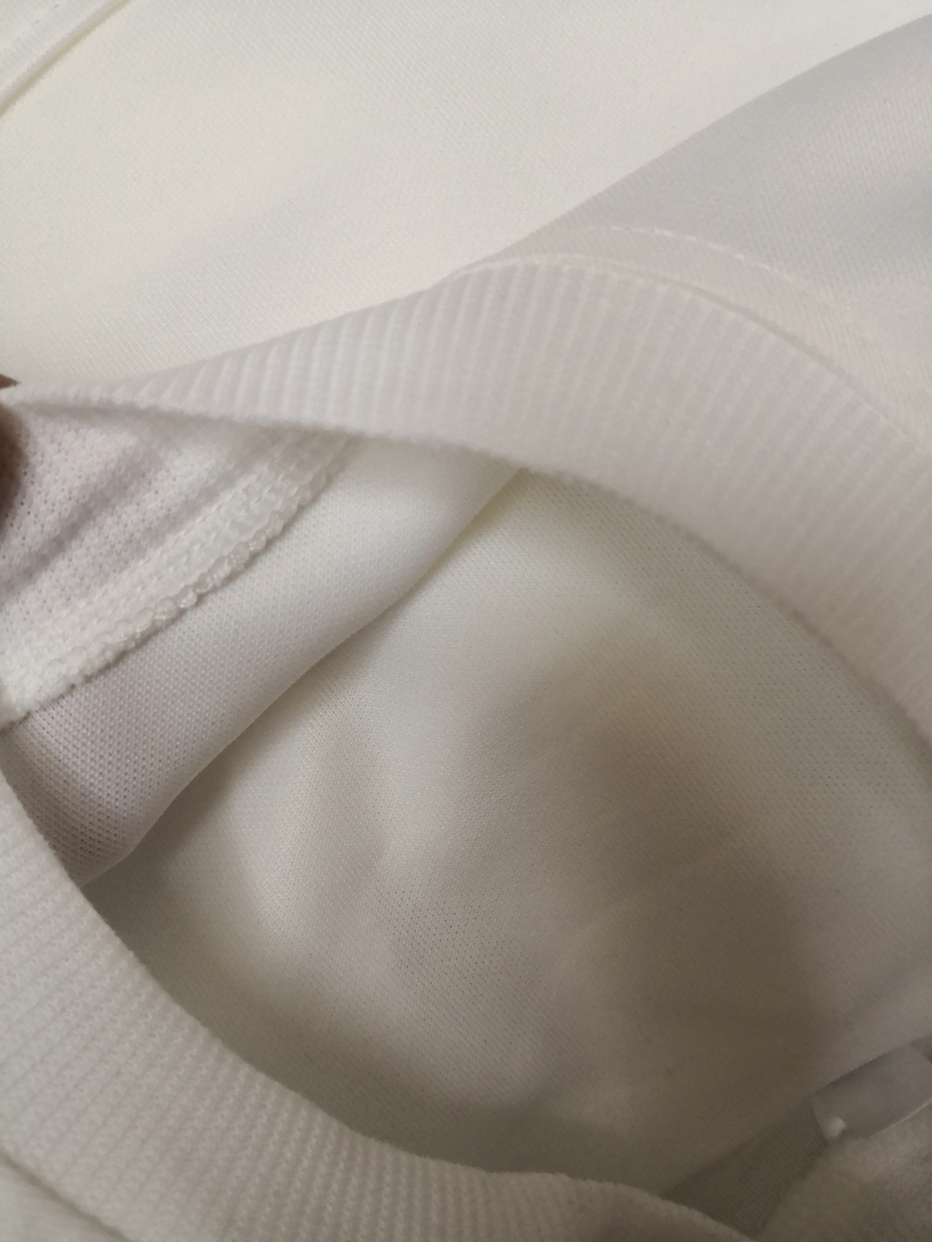 качество ужасное ,белый цвет делить сильно . Мои старые кроссовки которым год ,и то белее чем кофта и на фоне кофты сильно видно что это не белый цвет а молочный какой то . Плюс ткань воняет непонятно чем . И сама ткань ужасная и пошив неровный ,не стоит покупать ,максимум за какую я бы сумму купил ,это 3 доллара