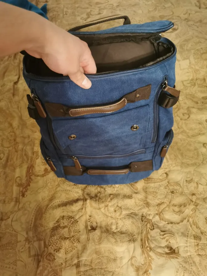 Рюкзак соответствует описанию. Материал плотный с винтажным окрасом. Молнии и заклёпки встроены и прошиты надёжно. Внутренний объем больше ожидаемого. Доставка без задержек в срок. Товар и продавца рекомендую.
