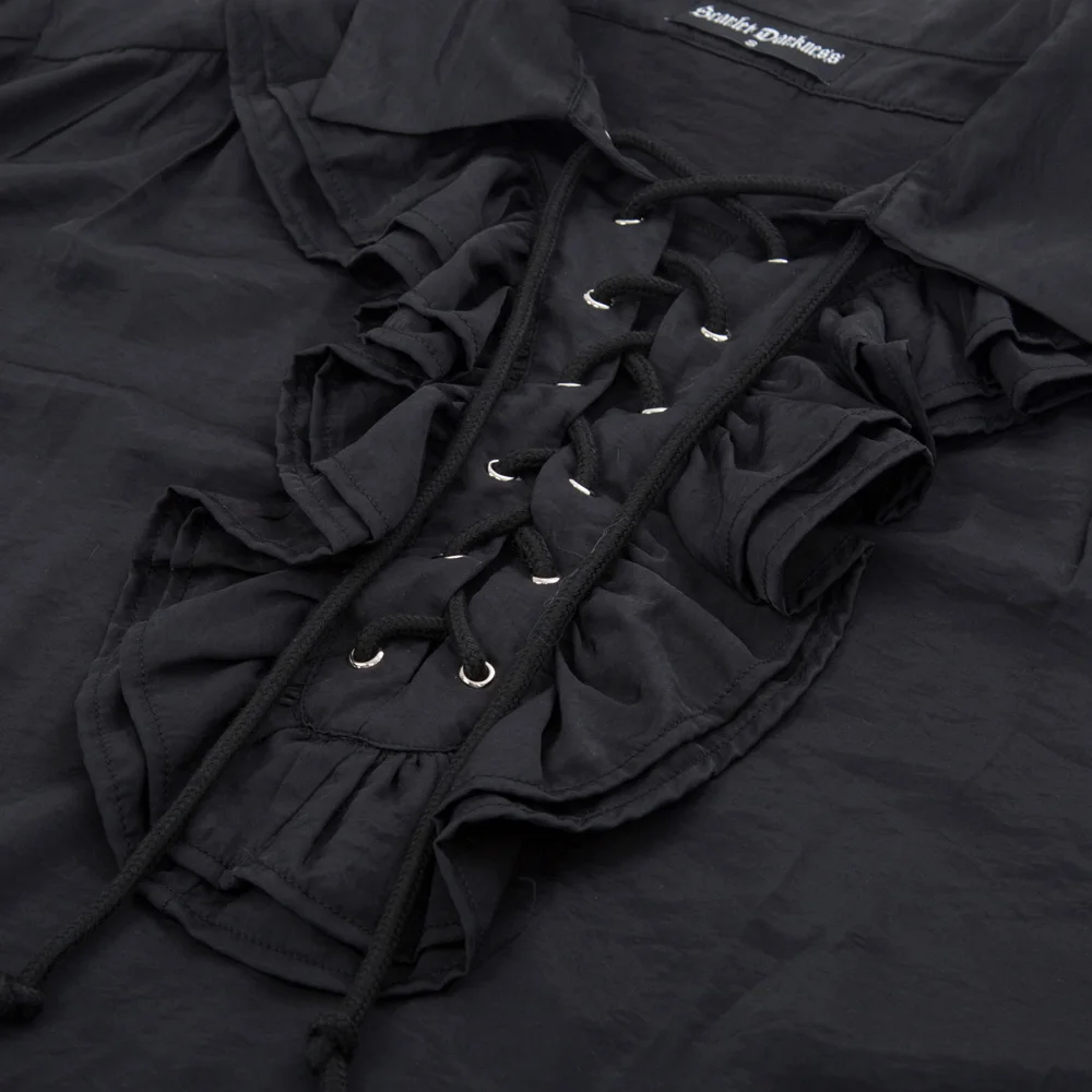 Рубашка мужская средневековая для вечеринки, винтажная сорочка в стиле ретро, с длинными рукавами, воротником с лацканами, с оборками, со шнуровкой, черныйцвет слоновой кости