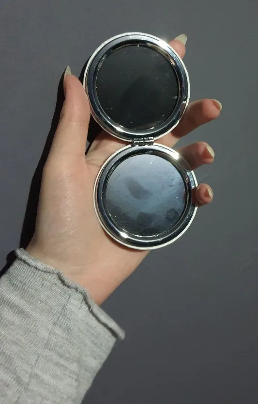 Характеристика:Карманное зеркалоВнешний размер: 65 мм (Диаметр) * 10 мм (THickness) прибл. Двойное боковое зеркало:Одна сторона-плоское зеркало, другая сторона-2x увеличительное зеркало.Использование: для макияжа, для красоты, подарок для друга, для свадебных подарков. Фотографии товаров: