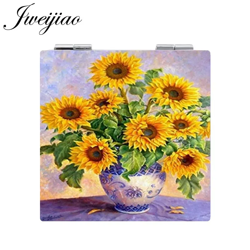 JWEIJIAO карманное мини-зеркало для фотографий с красивыми цветами в горшке растениями птицами складной квадратный 1X2X увеличительное искусственное зеркало