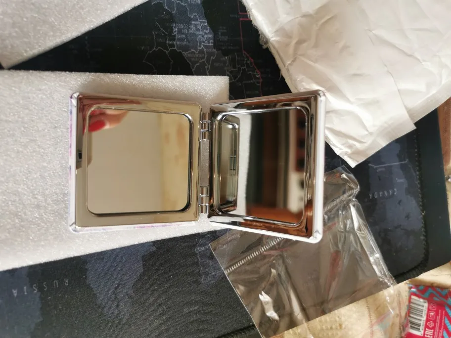 снимаю две звёзды за долгую отправку и доставку. зеркальце маленькое, для сумочки. сделано хорошо.
