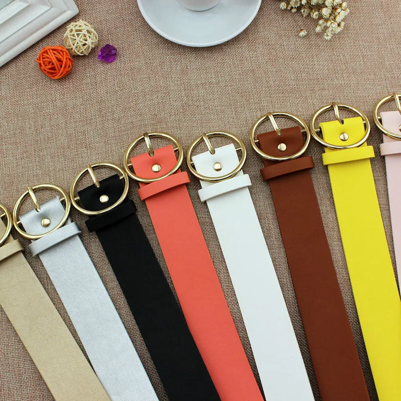 Ремень женский кожаный, с круглой пряжкой, широкий, 2020