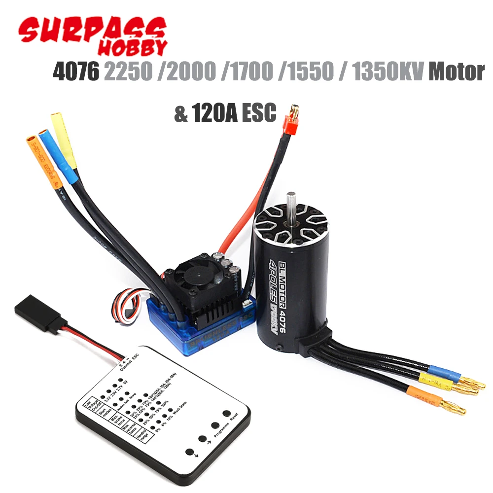 Бесщеточный двигатель RC 4076 1350KV1550KV1700KV2000KV2250KV без датчика с 120A ESC и программной картой для 18 RC Car Truck Toys