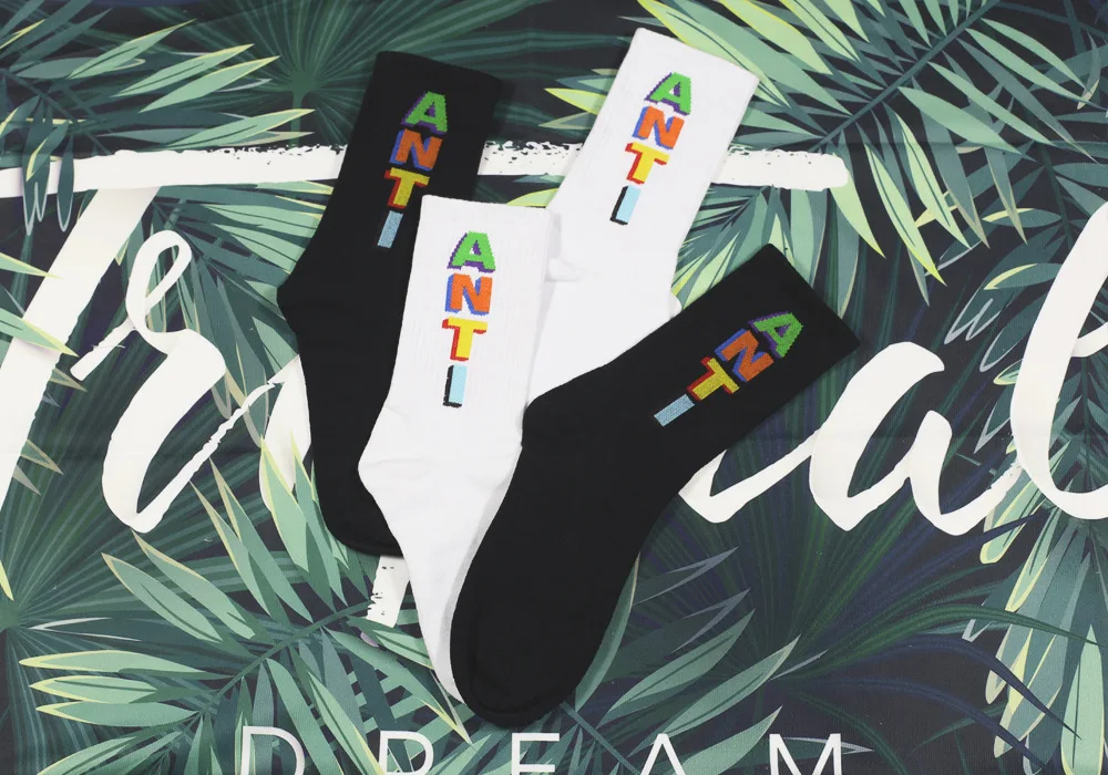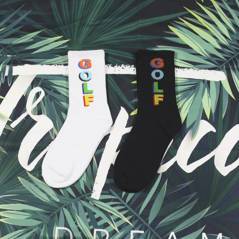 Модные уличные мужские носки унисекс 2019, носки в стиле хип-хоп с цветными надписями для гольфа, белые и черные носки для женщин, повседневные носки с перекрестными надписями, модели Crazy
