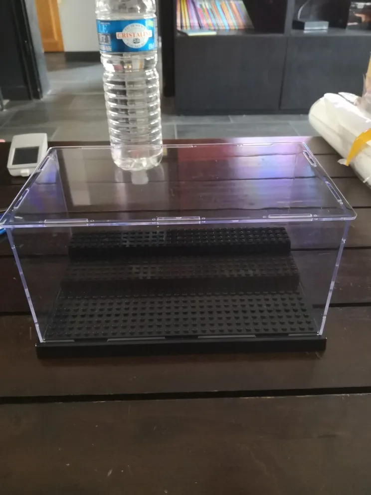 Сама вещь мне безумно понравилась. Заказывала как подарок человеку, который занимается коллекционированием минифигурок лего. Заказала 11.11, пришло 09.12. Боялась, что при транспортировке что-то может повредиться, но всё было хорошо упаковано и дошло в целости. Все боковые стенки без царапин, трещин и прочих изъянов. Снижаю оценку за то, что на самой верхней панели видны какие-то повреждения. Я сначала подумала, что это всего лишь грязь, однако это оказался дефект пластика. Он ничем не оттирается и остаётся на поверхности. Очень жаль, ведь другие панели в отличном состоянии. Поэтому ставлю твёрдую тройку, ведь заказывала как подарок, немного обидно.