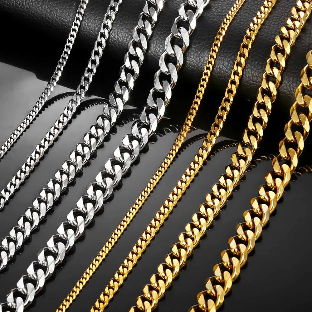 911 мм нержавеющая сталь Кубинский Цепочка на шею для мужчин для женщин золото черный серебряный цвет панцирная цепь ювелирные изделия Длина DKNM08