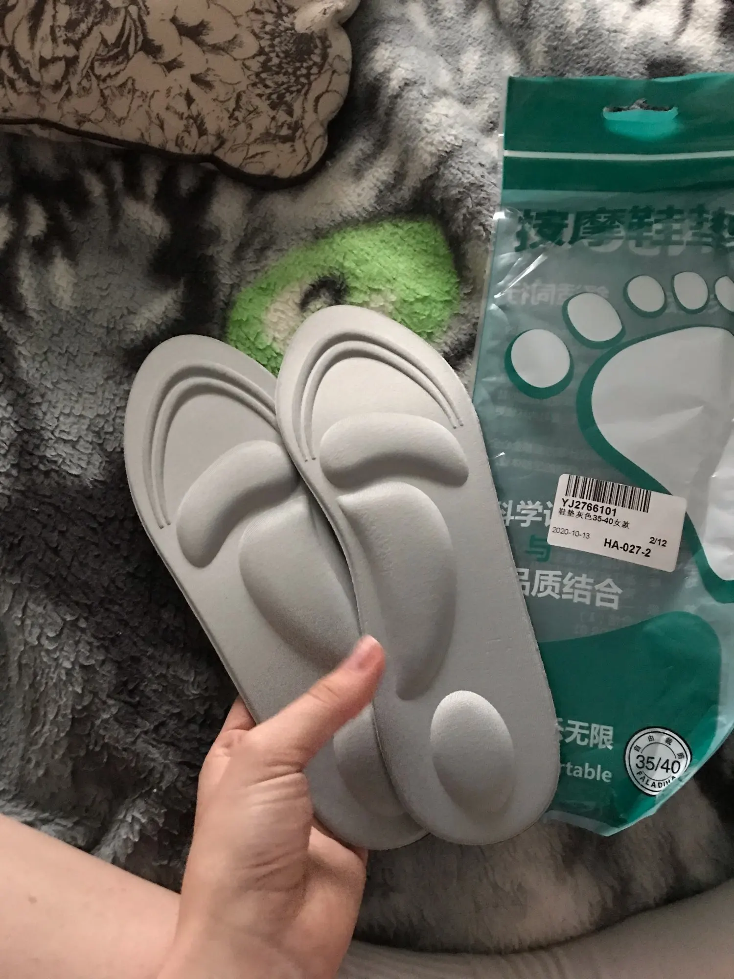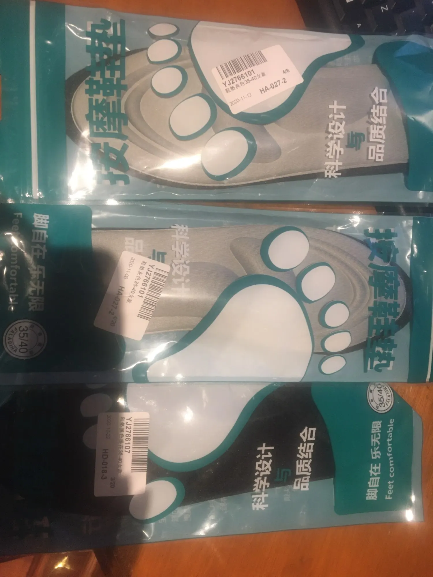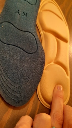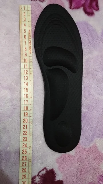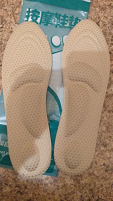 заказала 16.10 шесть пар разного цвета по 100руб за одну пару + доставка за всё 230руб, пришло на почту 10.11, трек отслеживался везде. 4 раздарила друзьям. Каждая пара упакована в индивидуальную упаковку. Сторона стельки к коже ноги выпуклая, которая амортизирует ногу, немного продавливается когда на нейстоишь. Материал внешний бежевого цвета, из ткани. Обратная сторона, к ботинку- синяя, водоотталкивающая, но это не резина. Общая длина стельки 24,8см, её можно уменьшить на несколько размеров( есть разметка для обрезки). У меня нога 24,5см, покупаю обувь рус размер 38- 38,5. Эта стелька ровно по размеру встала внутрь моей обуви, я ничего не уменьшала, мне удобно ходить. Мои ощущения при ходьбе по улице- удобно, амортизацию чувствую немного, но это не мешает ходьбе. Спасибо продавцу! Рекомендую к покупке!
