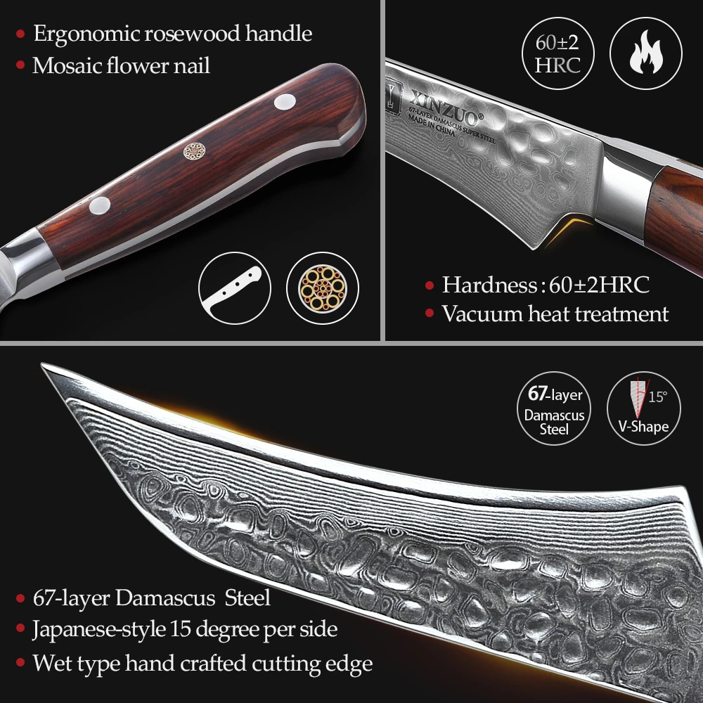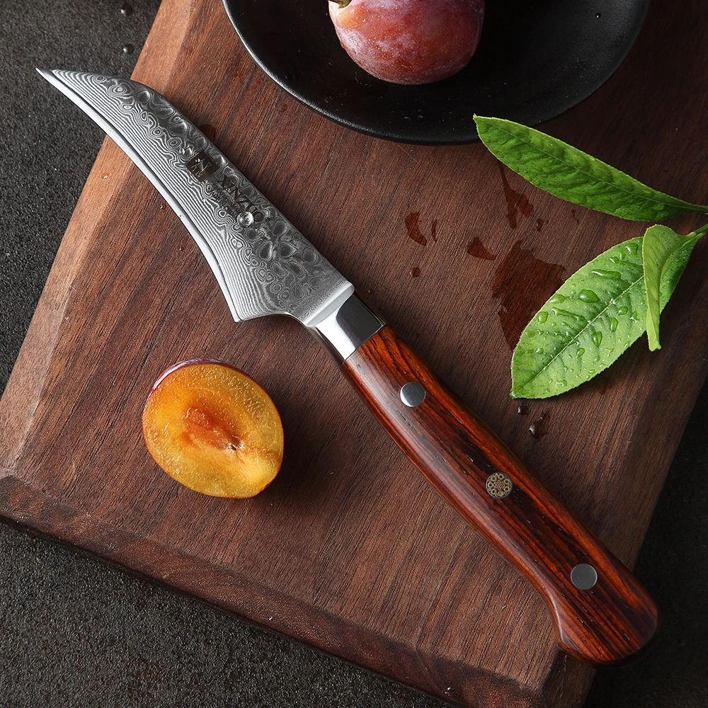 Нож для фруктов XINZUO 3,5 дюйма, кухонные аксессуары из нержавеющей стали, ножи для нарезки овощей, ножи для нарезки овощей, лезвие Дамаска, ручка из розового дерева
