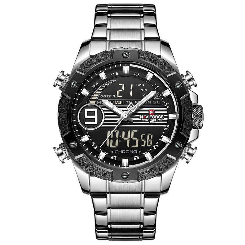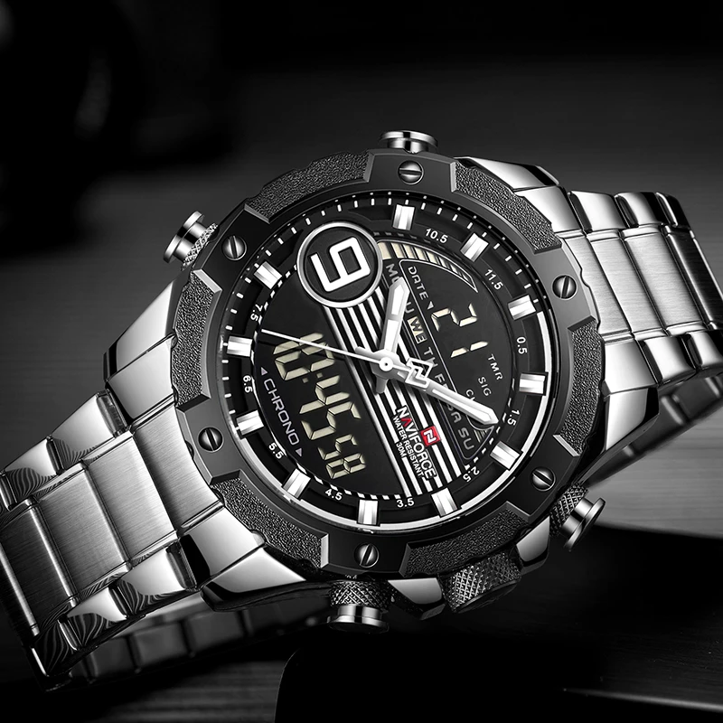 Мужские Аналоговые кварцевые часы NAVIFORCE, мужские цифровые часы с двойным дисплеем, модные повседневные спортивные наручные часы, мужские часы из нержавеющей стали