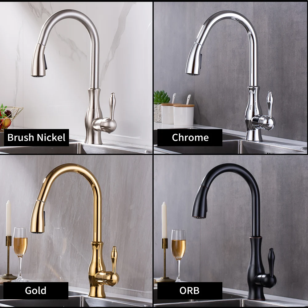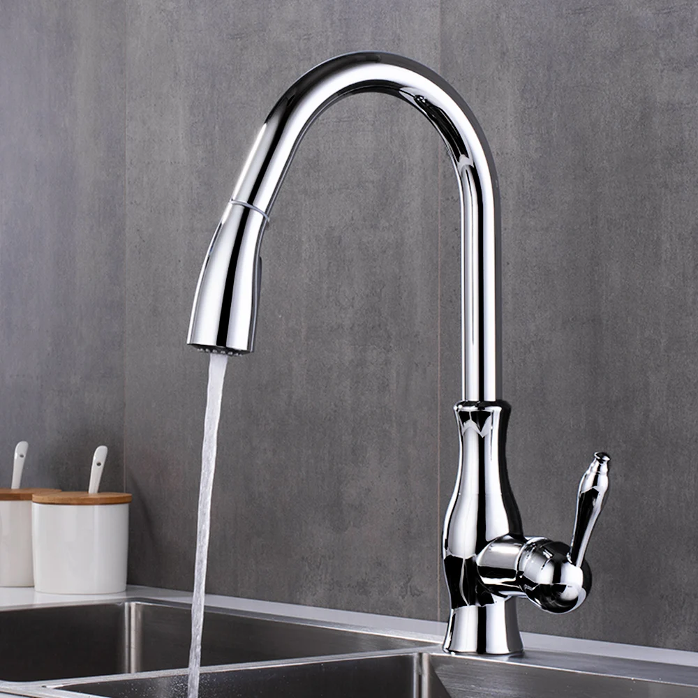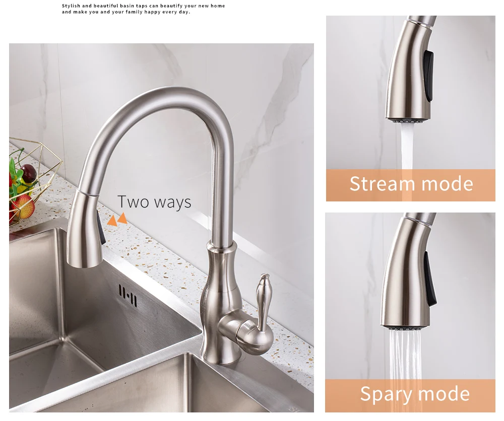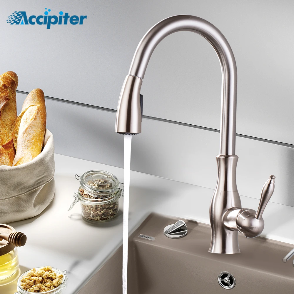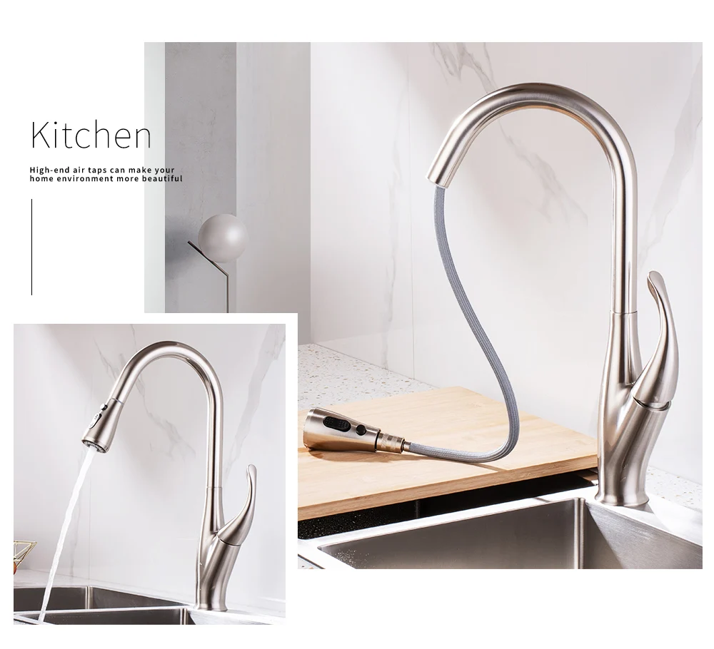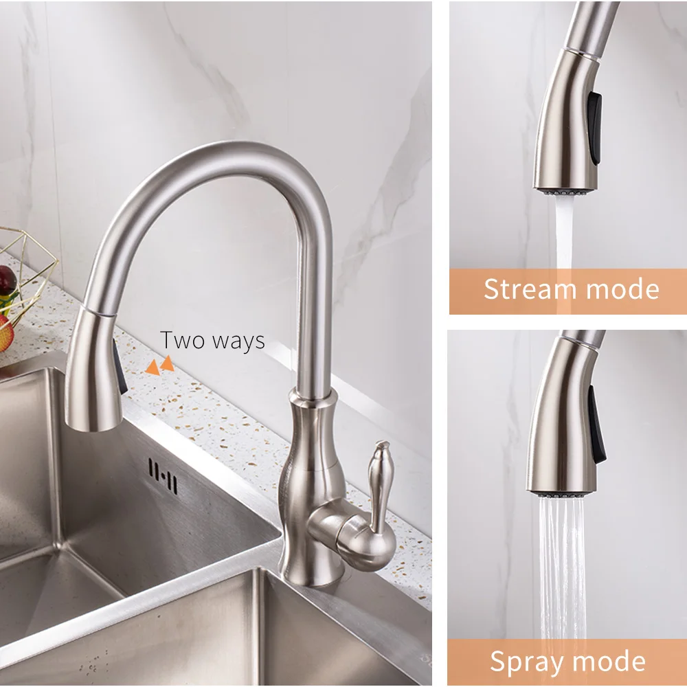 Матовый никелевый выдвижной кухонный кран для раковины с одной ручкой, с одним отверстием, хромированные краны, кухонный кран, 360 Поворотный Смеситель для воды