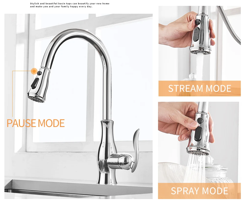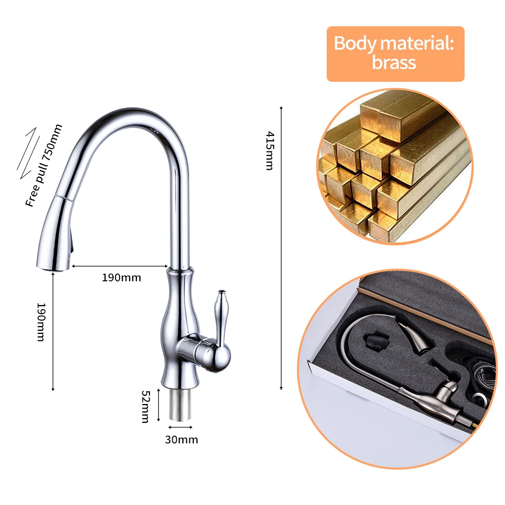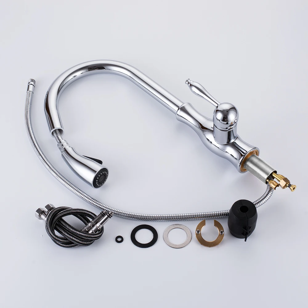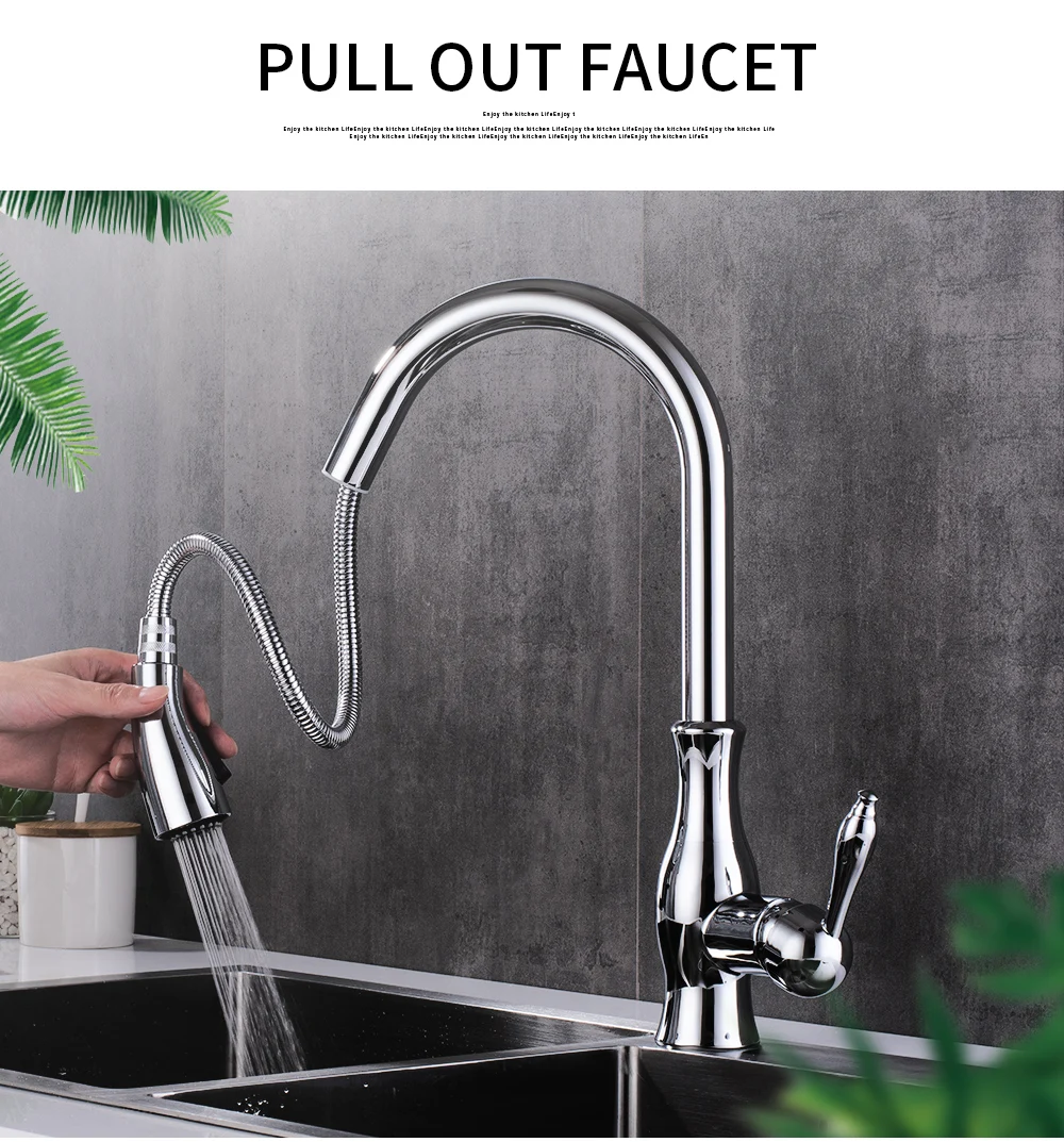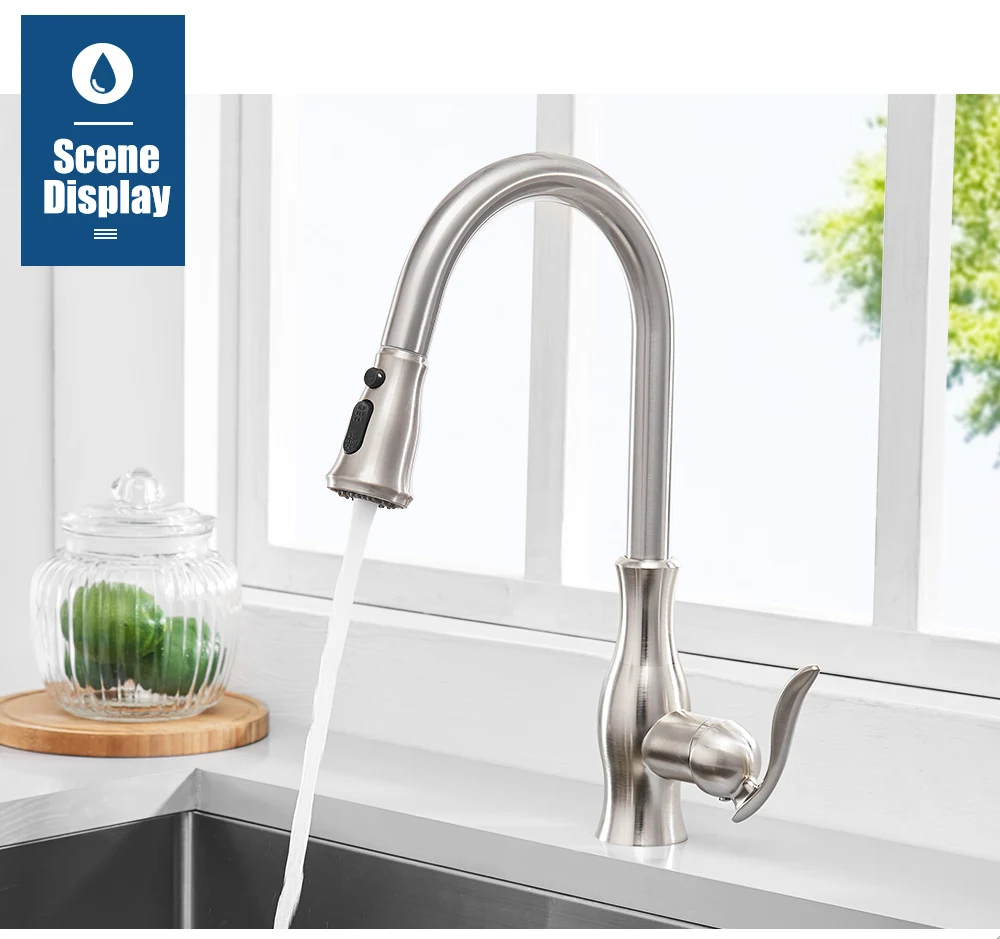 Матовый никелевый выдвижной кухонный кран для раковины с одной ручкой, с одним отверстием, хромированные краны, кухонный кран, 360 Поворотный Смеситель для воды