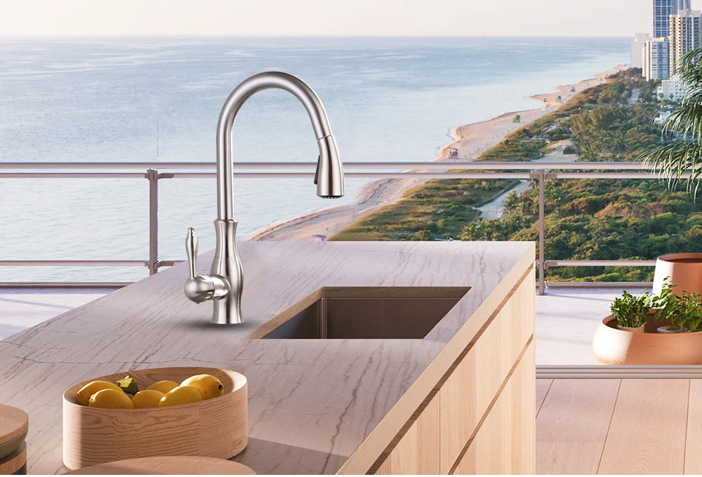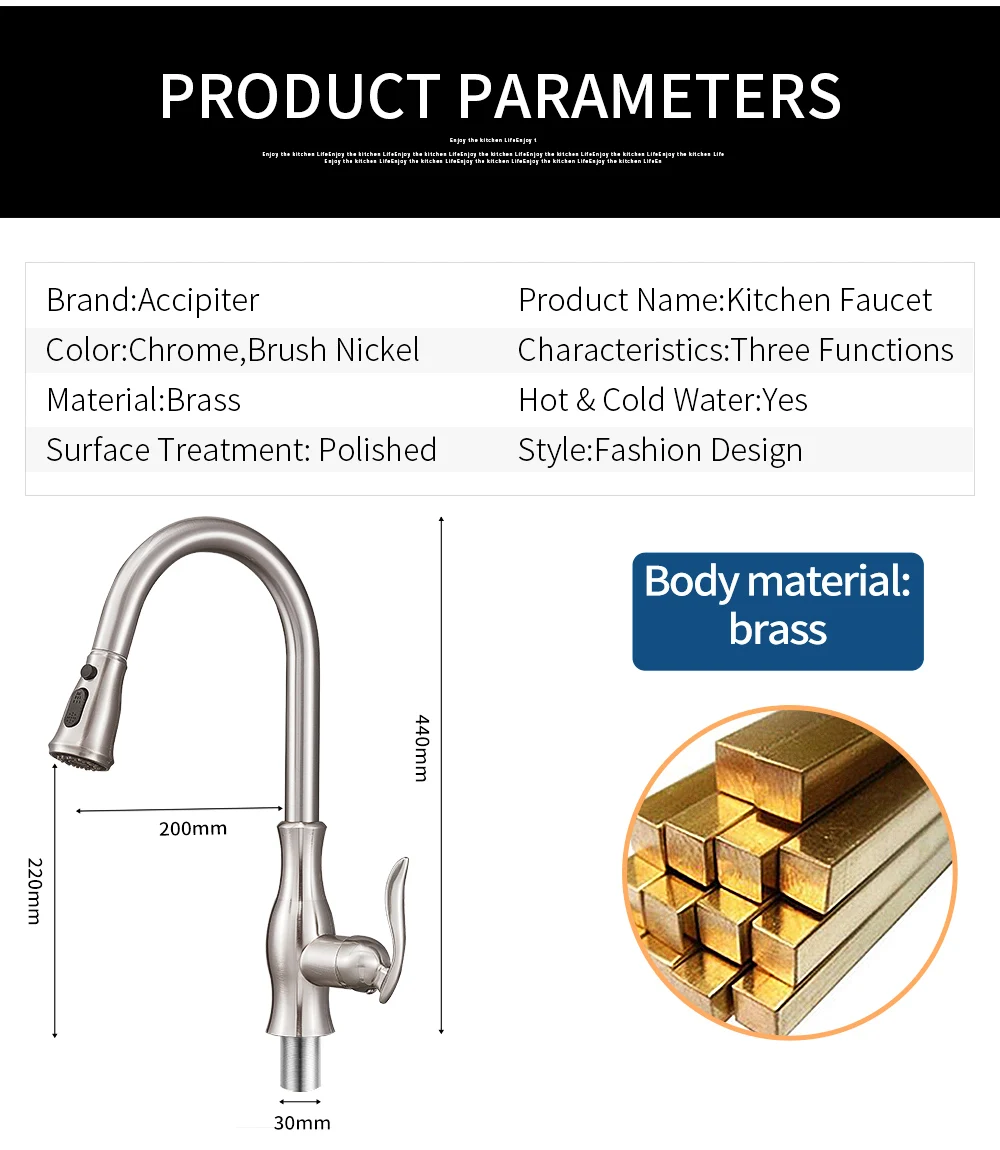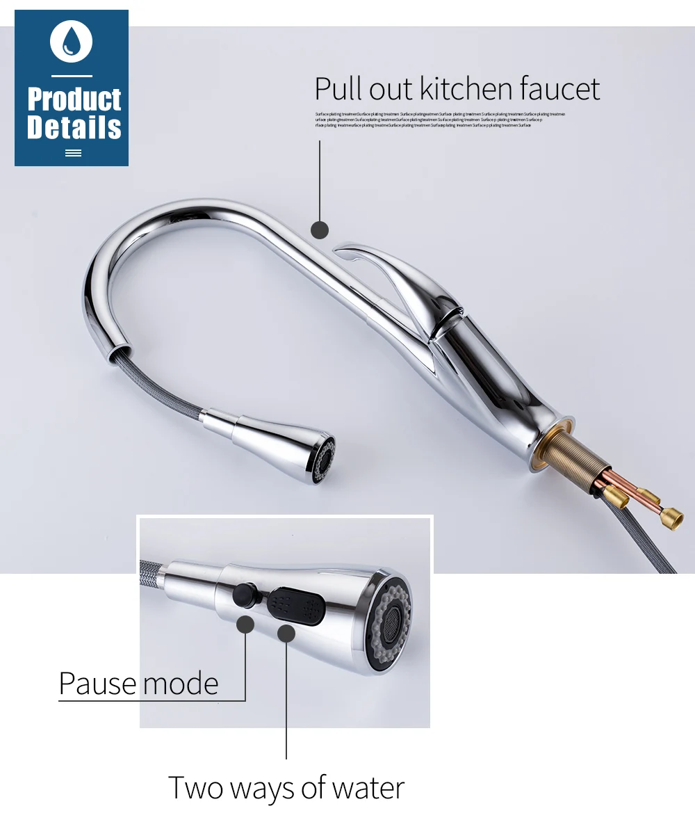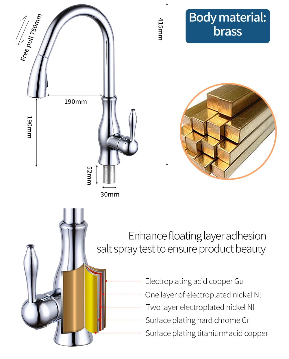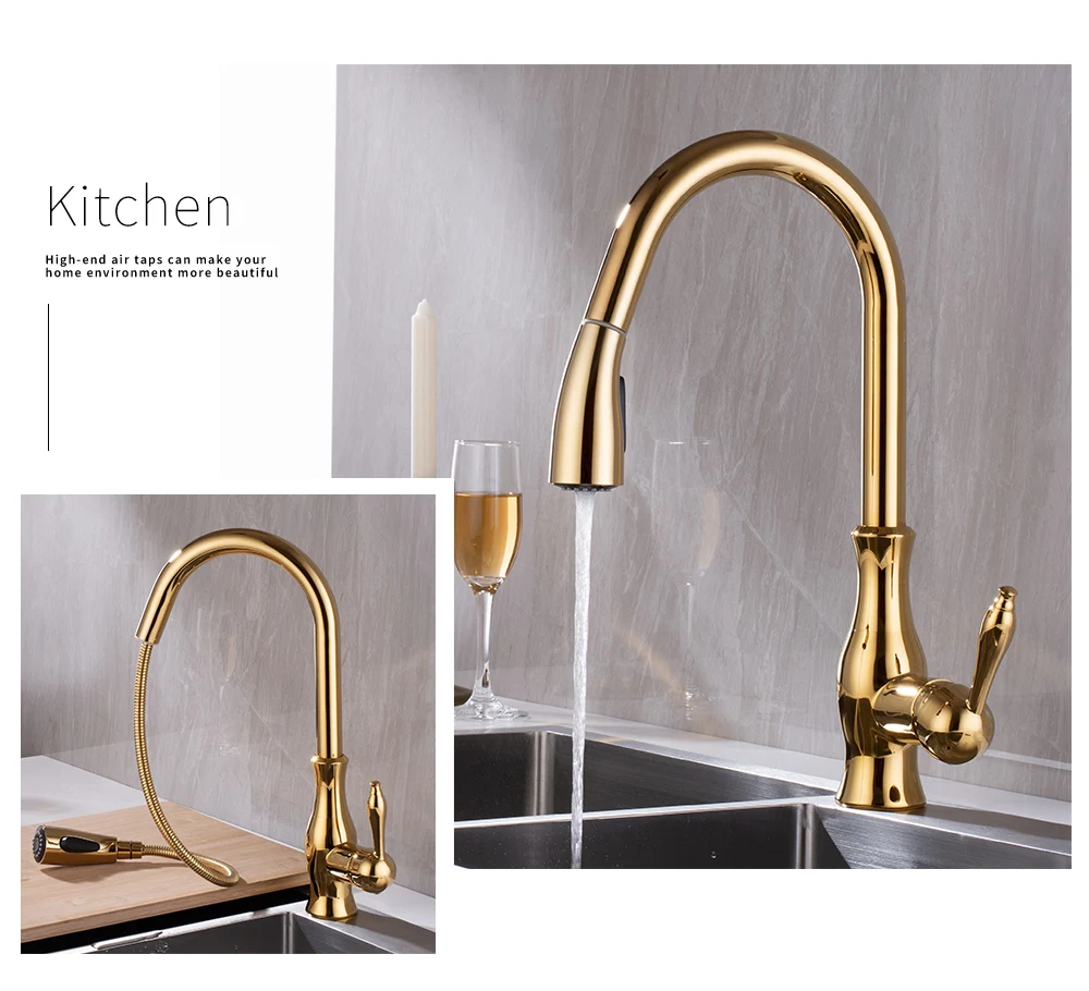 Матовый никелевый выдвижной кухонный кран для раковины с одной ручкой, с одним отверстием, хромированные краны, кухонный кран, 360 Поворотный Смеситель для воды