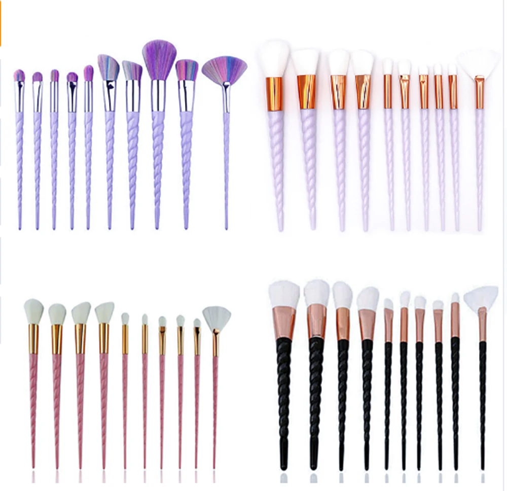 10 шт набор кисточек для макияжа с ручкой в форме рога единорога пудра смешивания теней для век макияж кисти белый черный косметический Красота Make Up Инструменты
