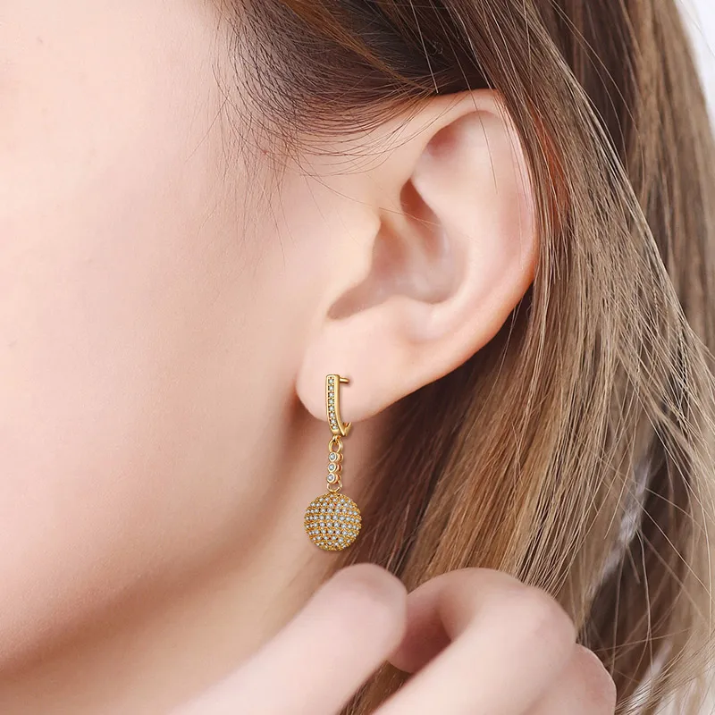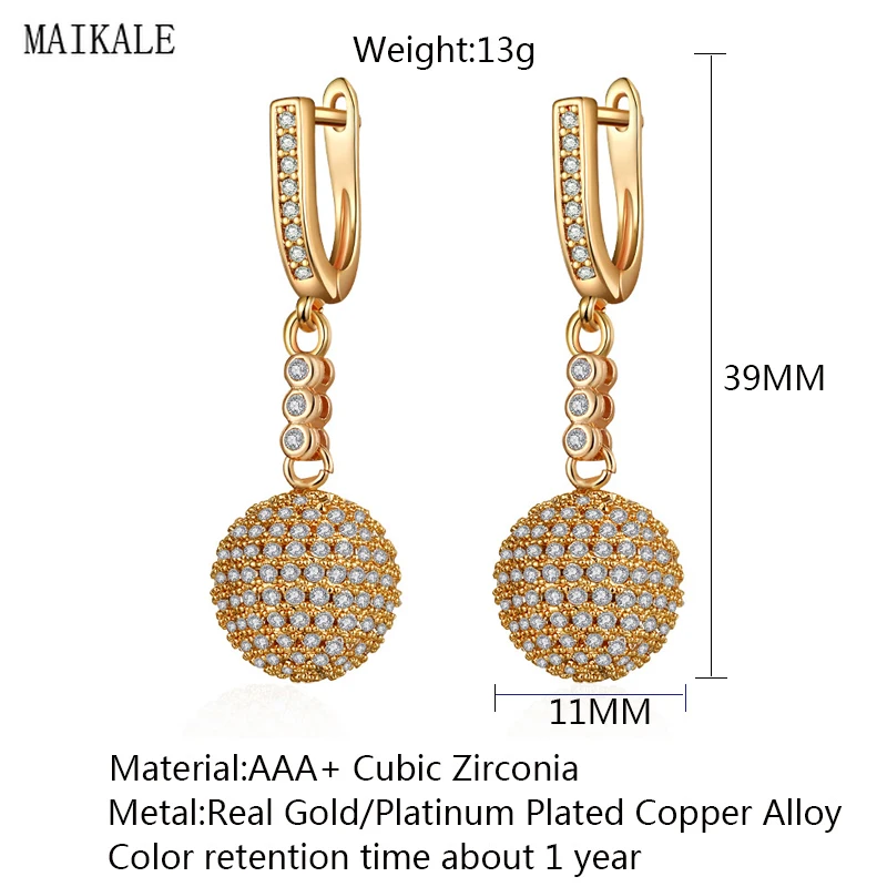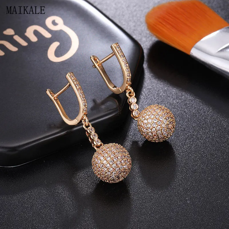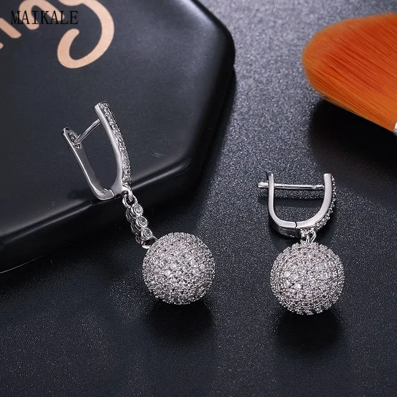 Женские серьги-подвески с черным фианитом MAIKALE, золотистые сережки в форме диско-шара, Ювелирное Украшение для подарка, цвет серебра талисман