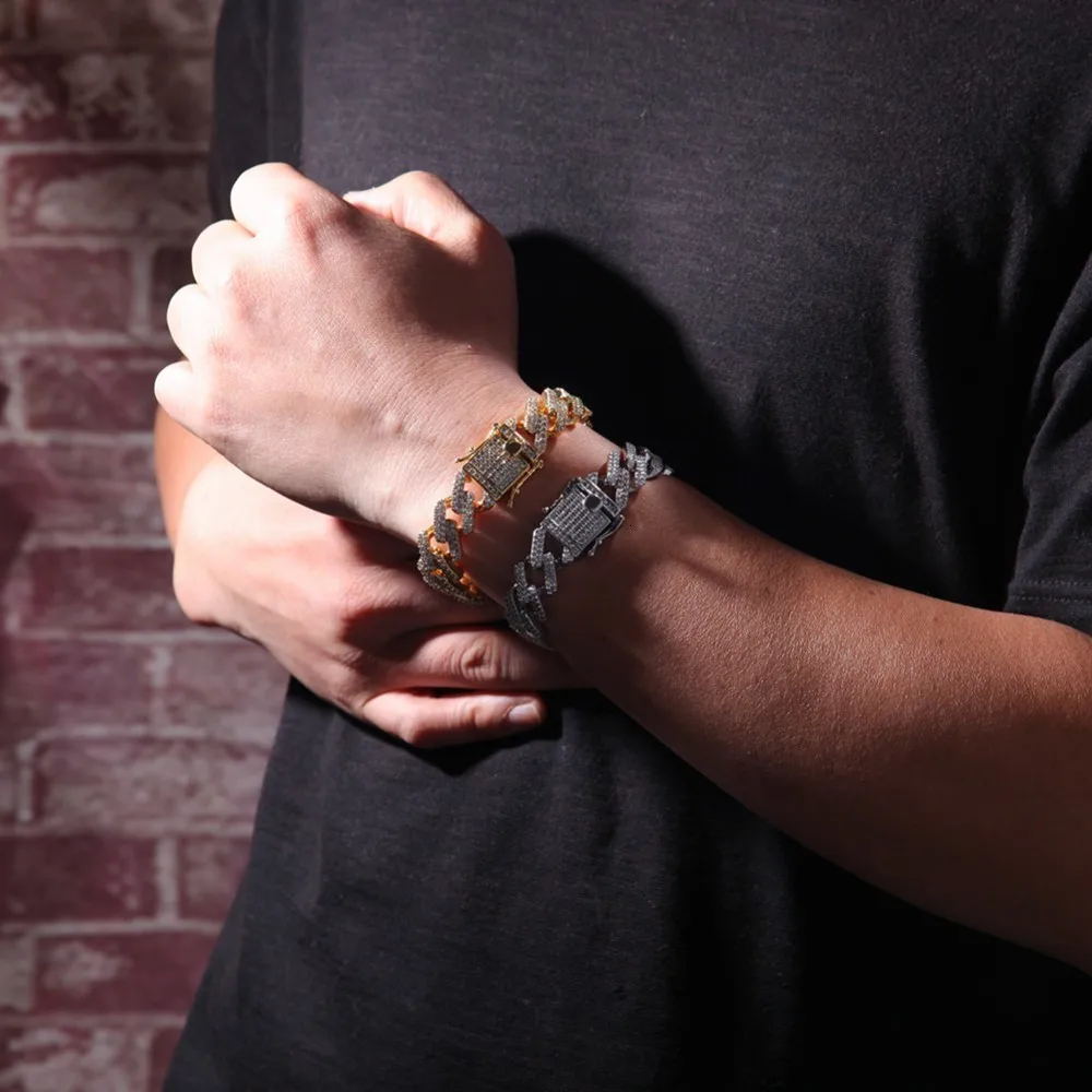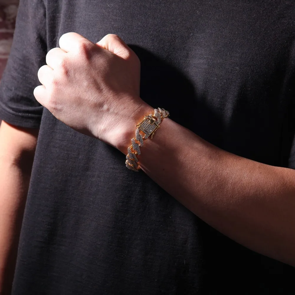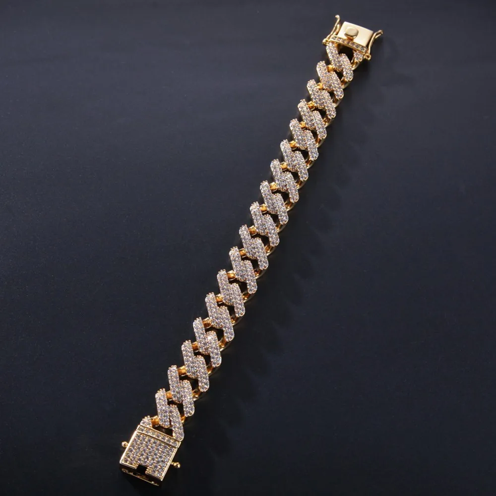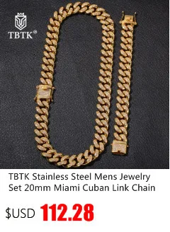 TBTK 14 мм кубинское звено ожерелье и браслет Ювелирные наборы с застежкой коробки золото медь остроконечные сверкающие циркониевые камни для мужчин крутые