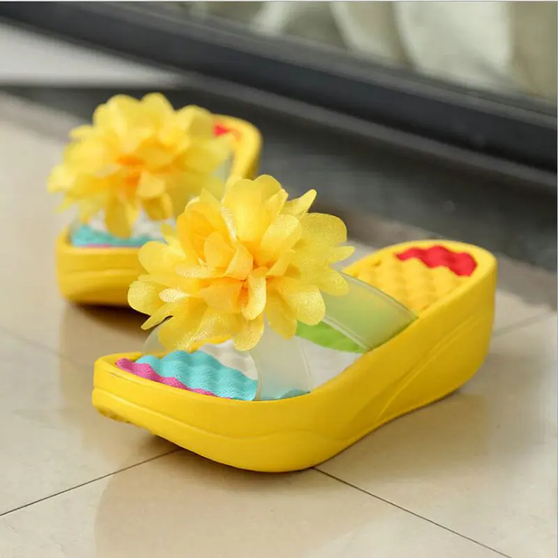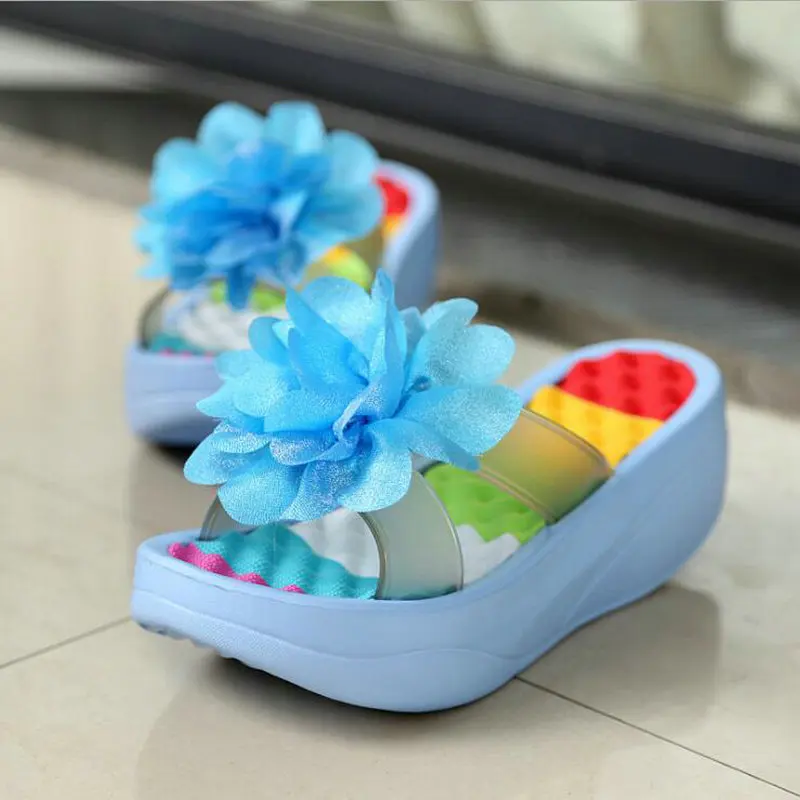 Летние босоножки на танкетке шлепанцы; Шлепанцы на платформе; Шлепанцы; Сандалии; Новинка; Женские босоножки; Модная обувь с цветами; RTG6