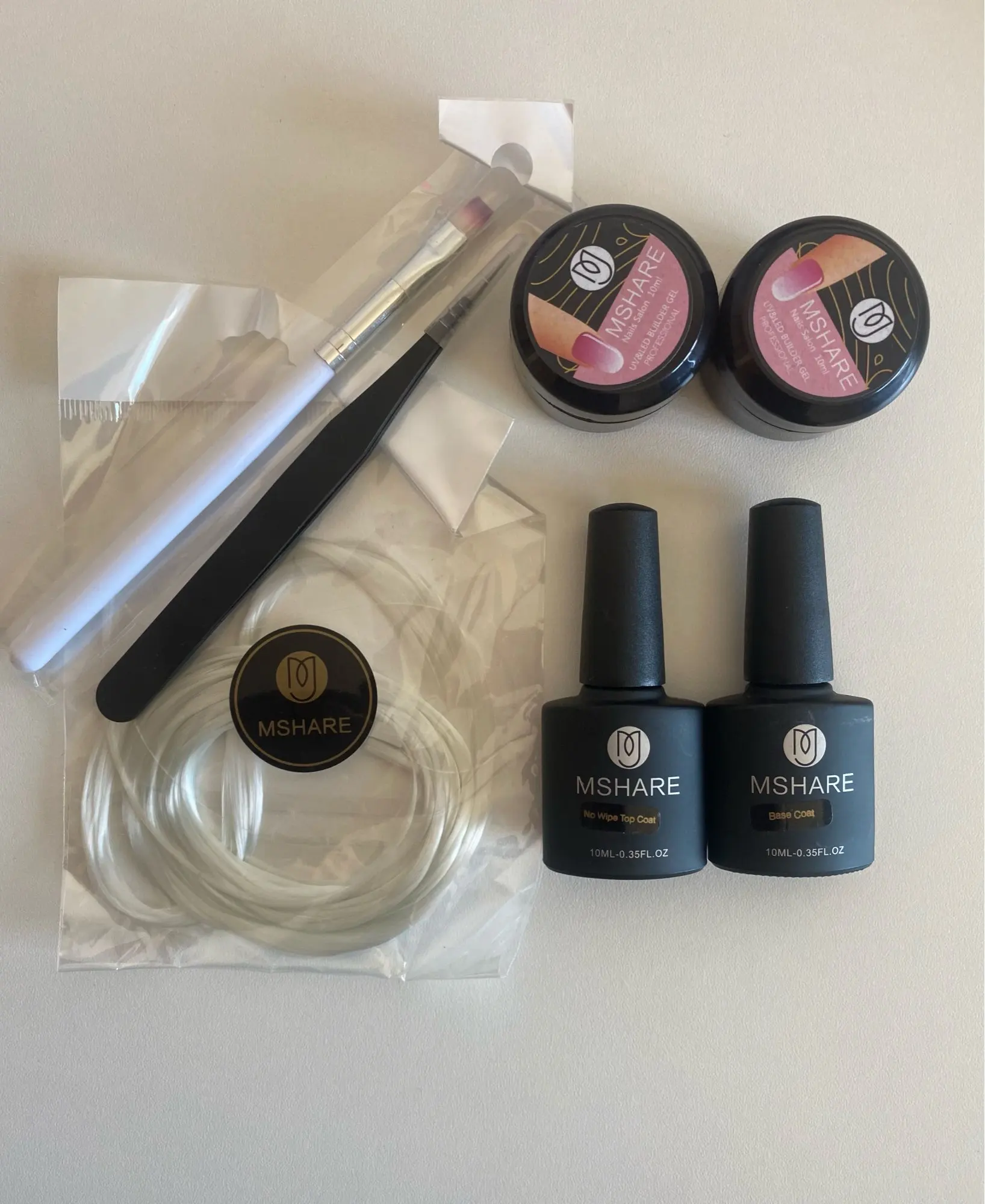 1 * стекловолокно1 * кисть1 * пинцет2 * строительный гель для ногтей1 * Базовый гель1 * лаки для ногтей