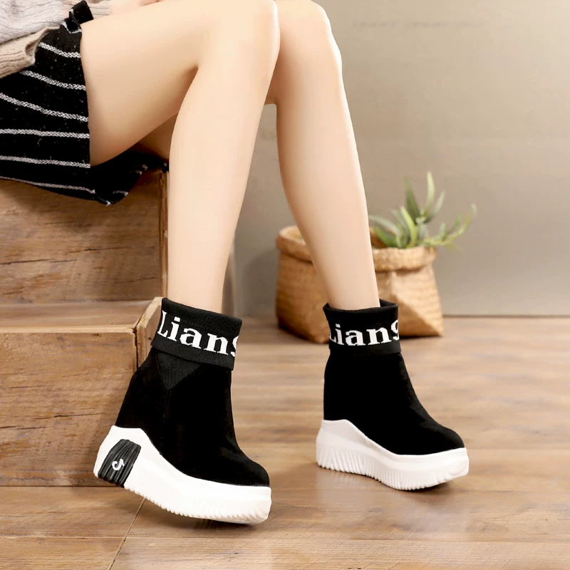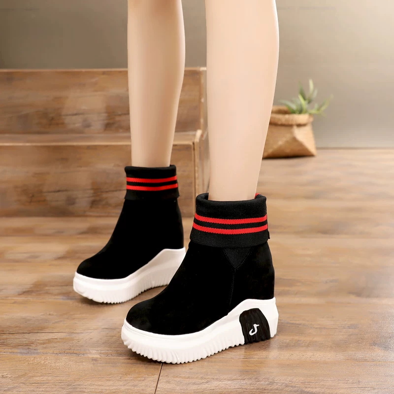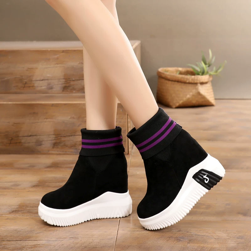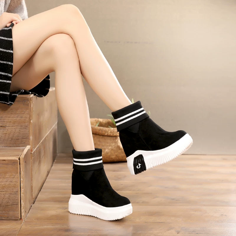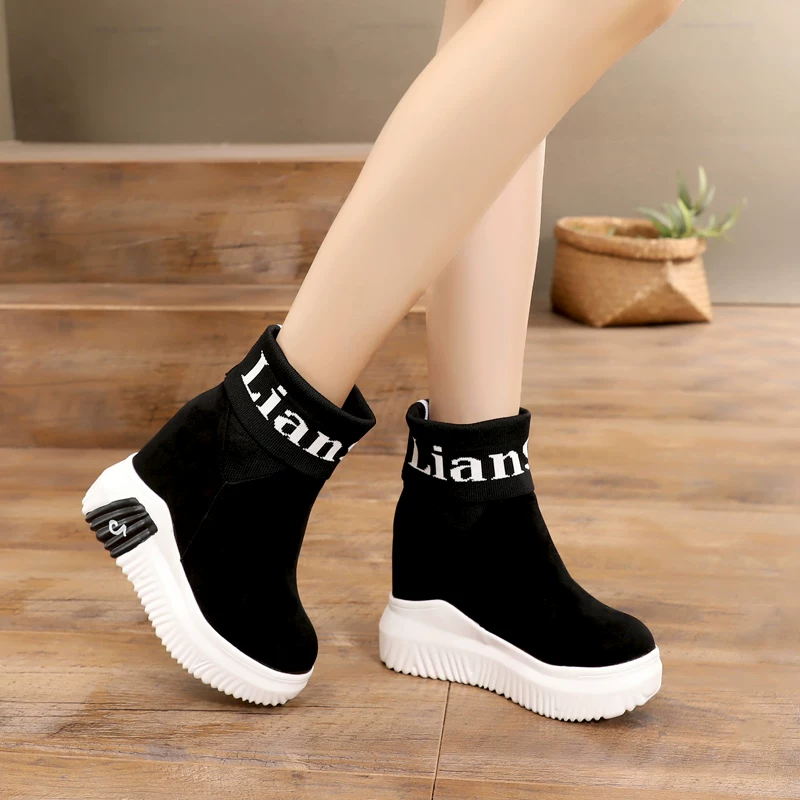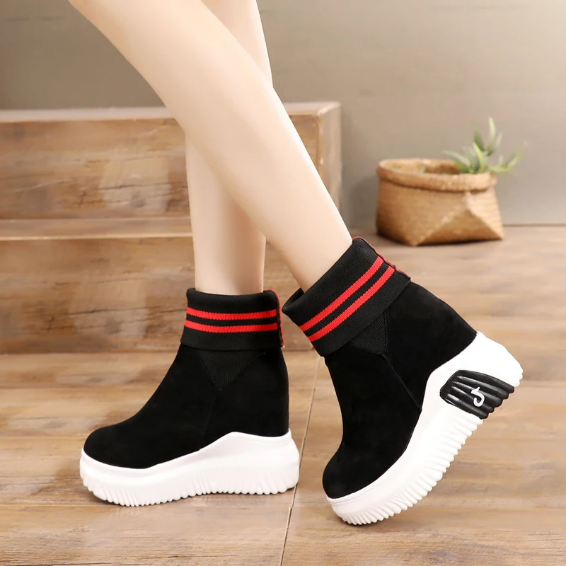Женские замшевые Ботинки, Ботильоны на платформе, повседневные, на танкетке, 2019, Модные осенние кроссовки, задники, обувь на толстой резине