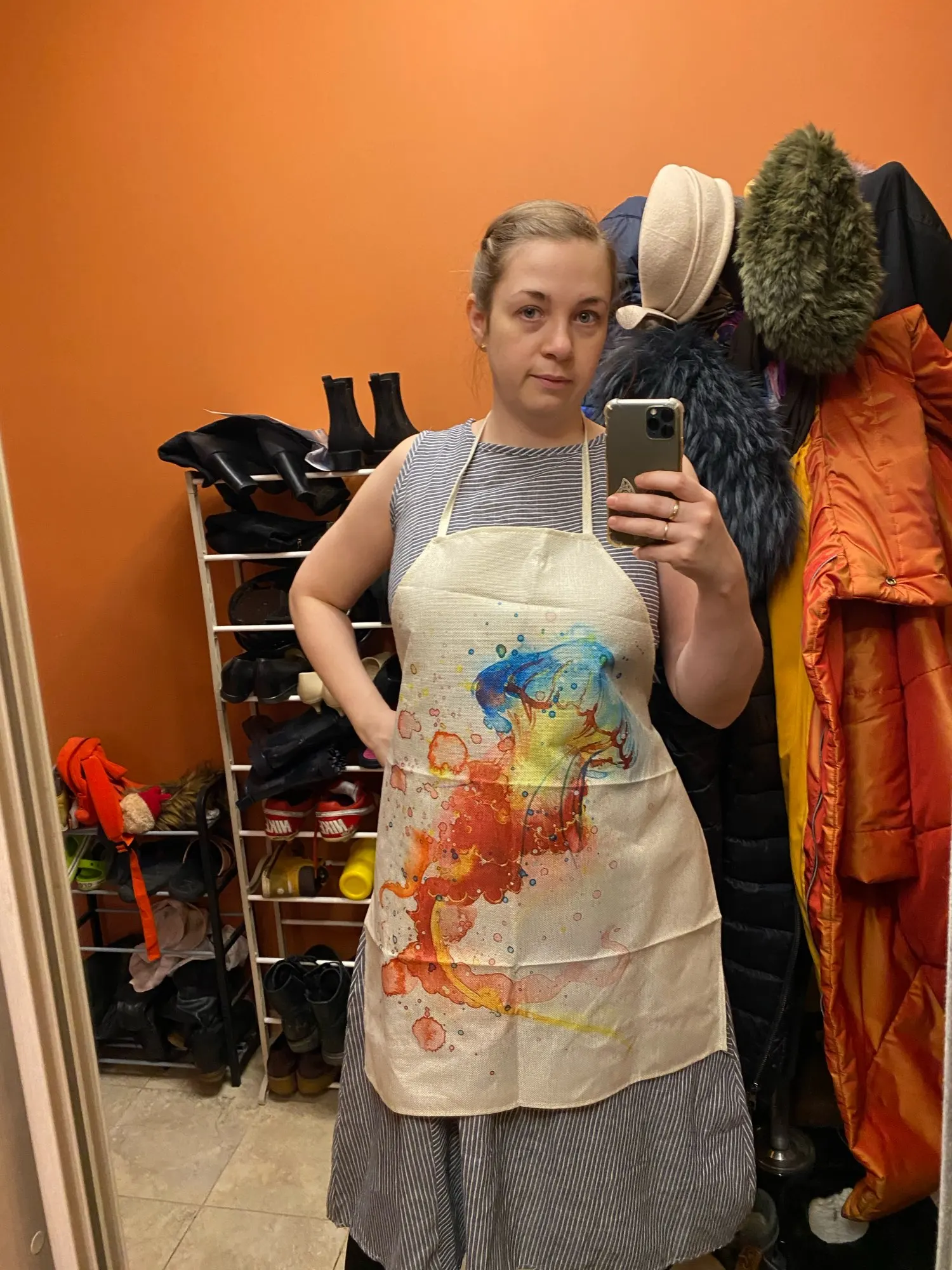 Фартуки в Московскую область пришли достаточно быстро. Пошиты аккуратно, швы ровные, очень порадовал принт, купила с крабом, ярко, красиво необычно. Фартук Водопрницаемый! Продавцу спасибо за оригинальную вещь, закажу ещё! Рекомендую.