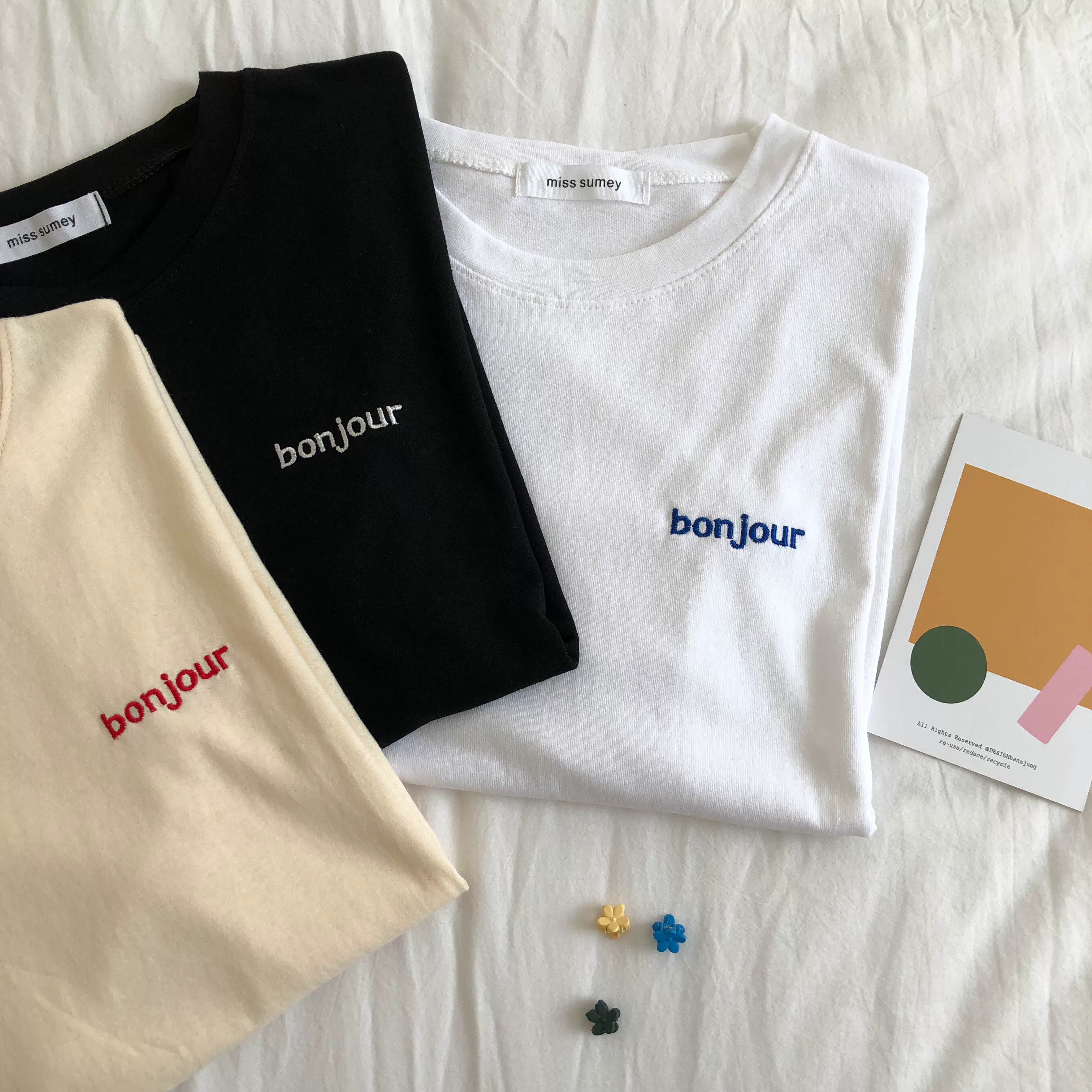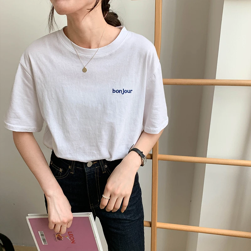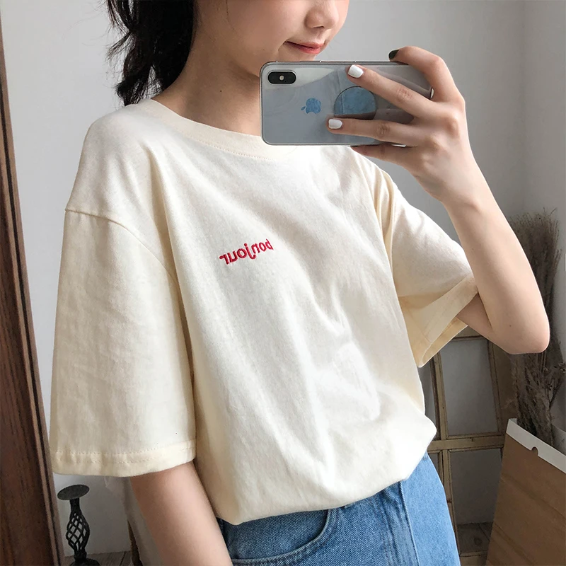 Футболка женская, с вышивкой букв, летняя, свободная, с коротким рукавом, в Корейском стиле, X238, 3 вида цветов