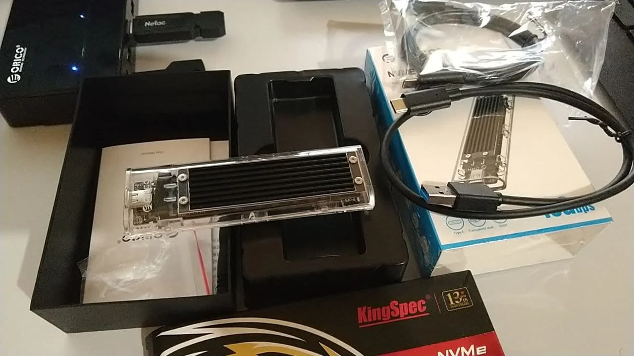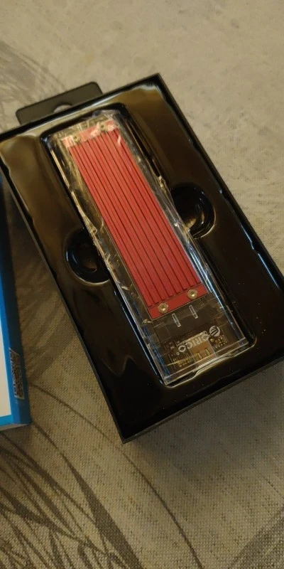 Отличный, маленький портативный чехол для M.2 SSD. Очень быстрая передача файлов. Может быть только один Отрицательный: слишком легко открыть-не подходит для транспортировки в сумке.