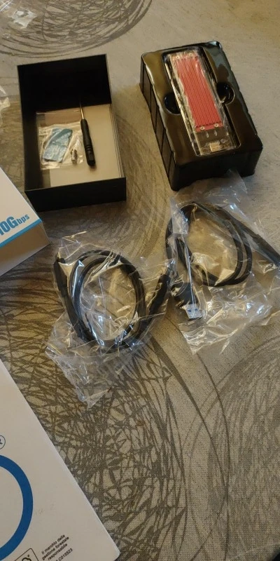 Excelente. Tal y como se ve en la imagen. Carcasa, dos cables, tornillos y destornillador. Probado, y la velocidad es increíble. Muy satisfecho con la compra.