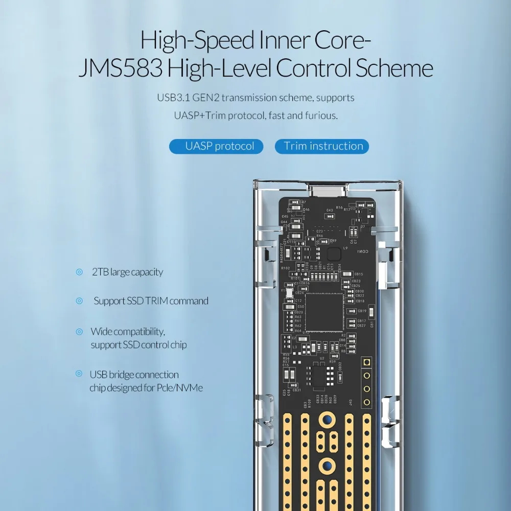 Корпус ORICO M.2 SSD для NVME PCIE NGFF SATA MB Key SSD Disk NVME SSD корпус M.2 на USB C прозрачный корпус для жесткого диска 10 Гбитс