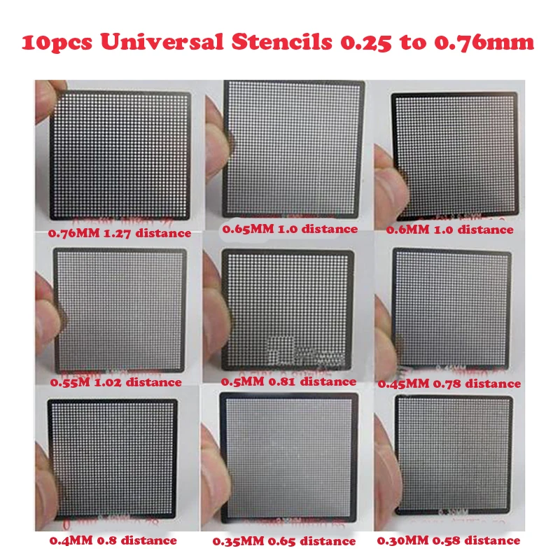 10 шт.лот универсальные трафареты прямого нагрева BGA от 0,25 до 0,76 мм Bga набор инструментов для реболлинга