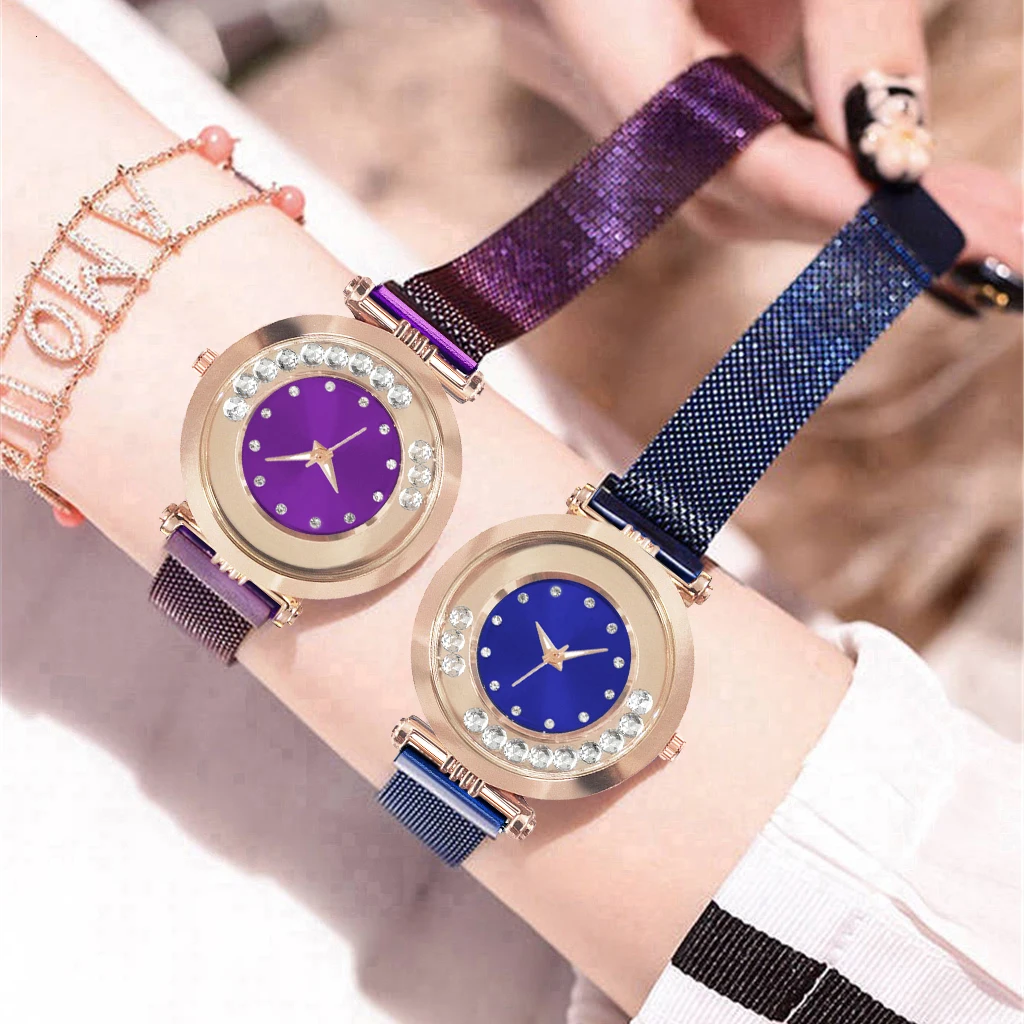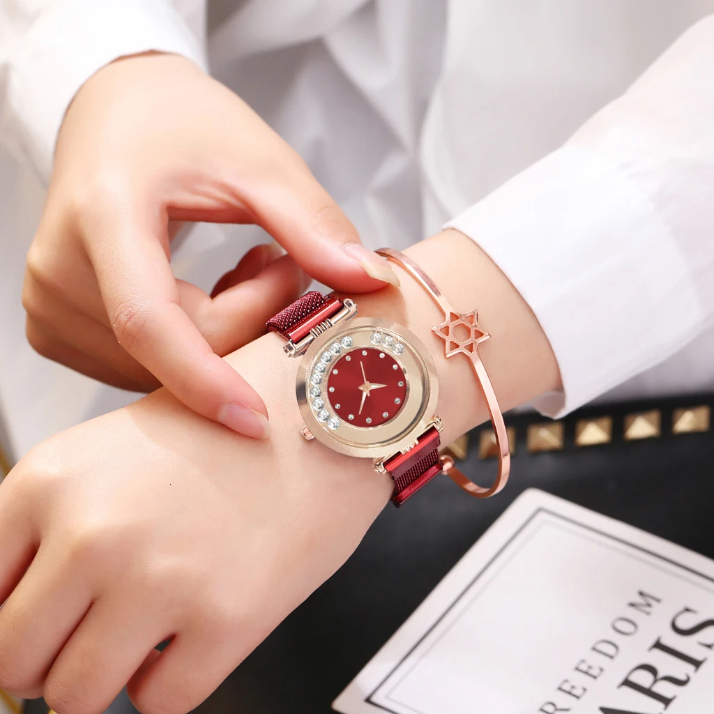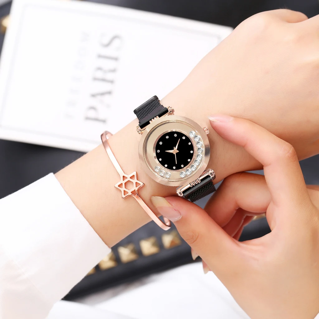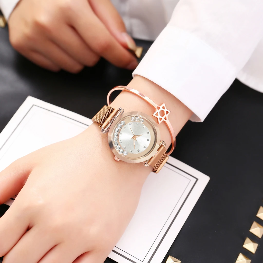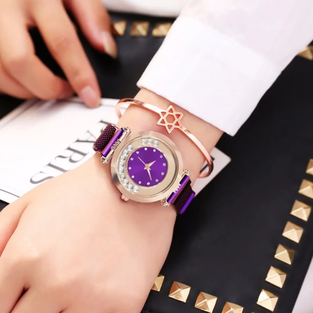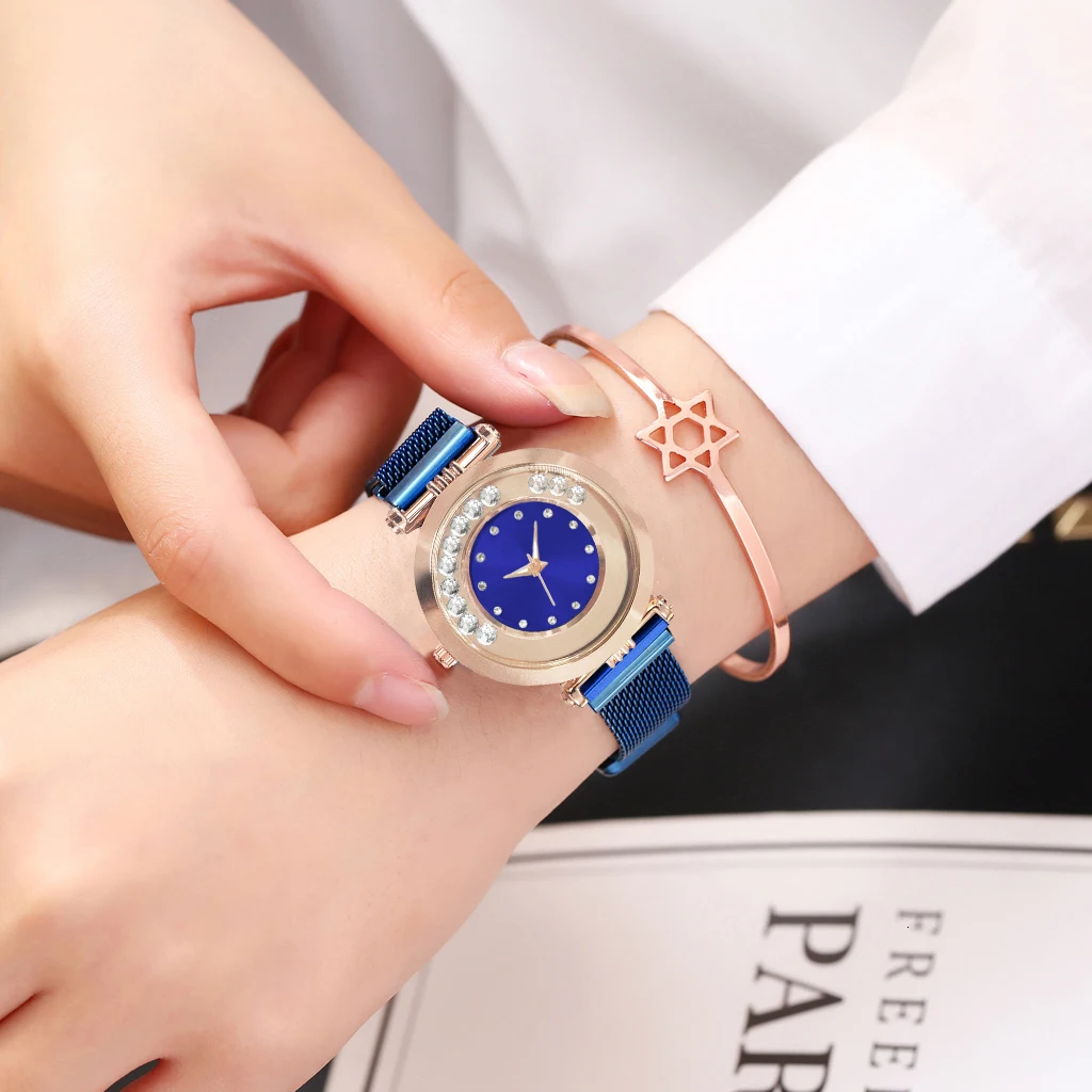 Часы Vansvar женские кварцевые с магнитной пряжкой, люксовые наручные, с изображением звездного неба, из нержавеющей стали