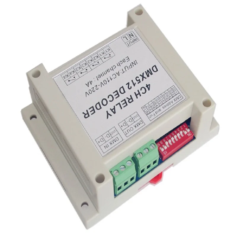 Оптовая продажа 1 шт. DMX-RELAY-4 каналов dmx512 3P реле AC110-220V 4CH контроллер декодер RGB светодиодные ленты использовать для светодиодных ламп