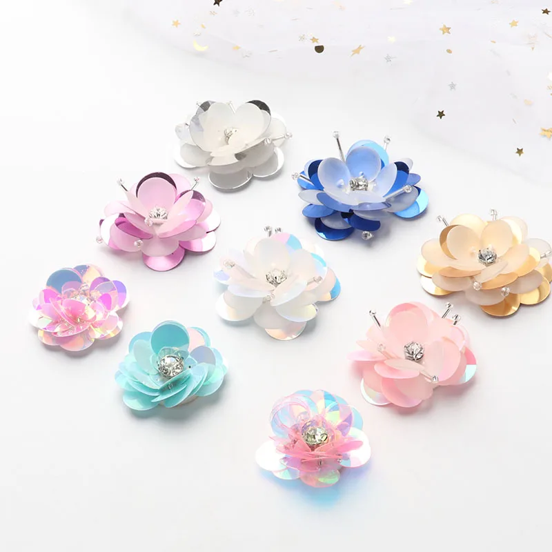 Высокое качество 3D ручной работы Блестки бусины Цветок Аппликация зажим для волос сумки Брошь платье вышивка DIY аксессуары для шитья