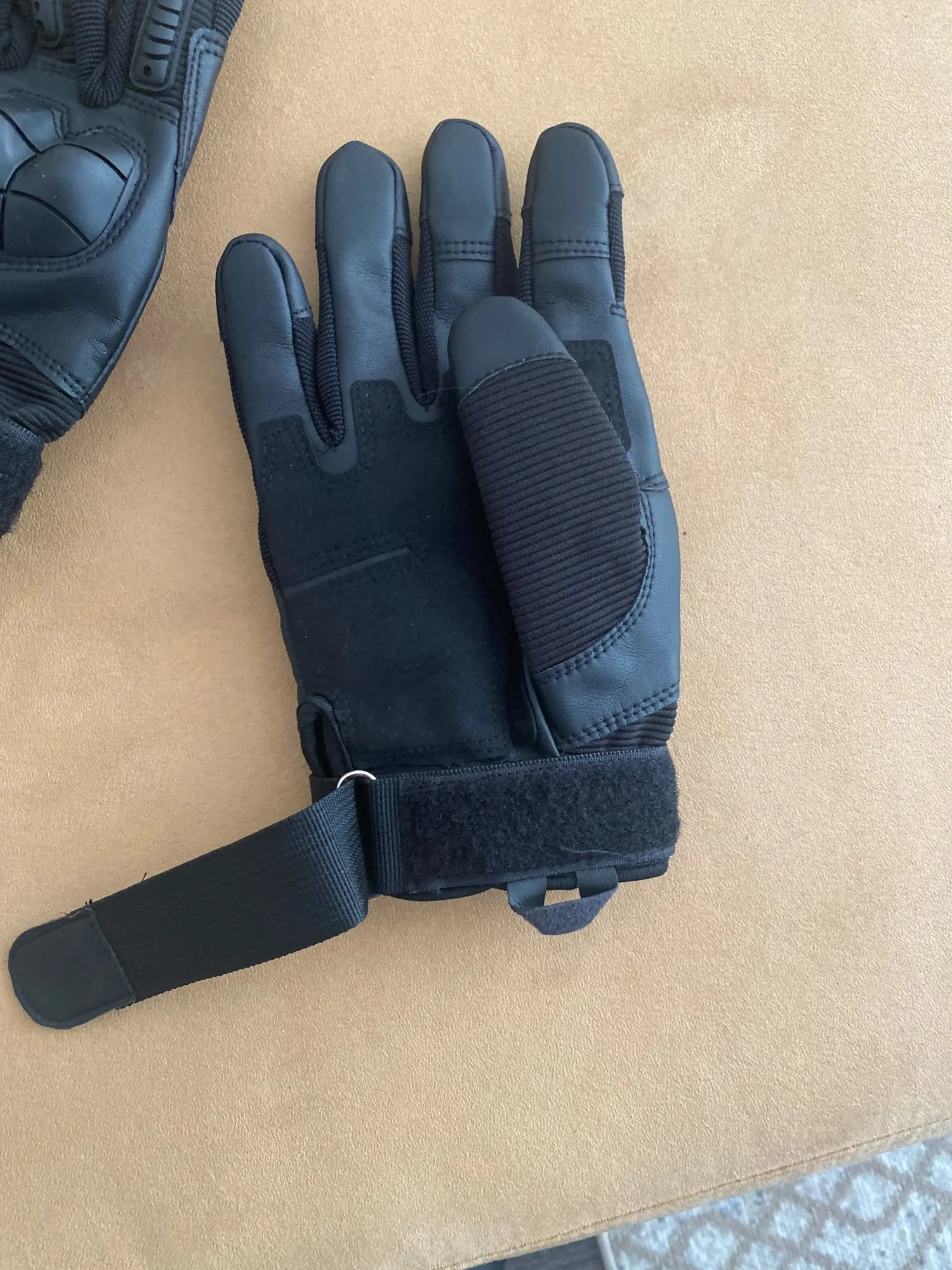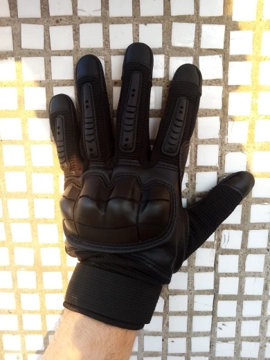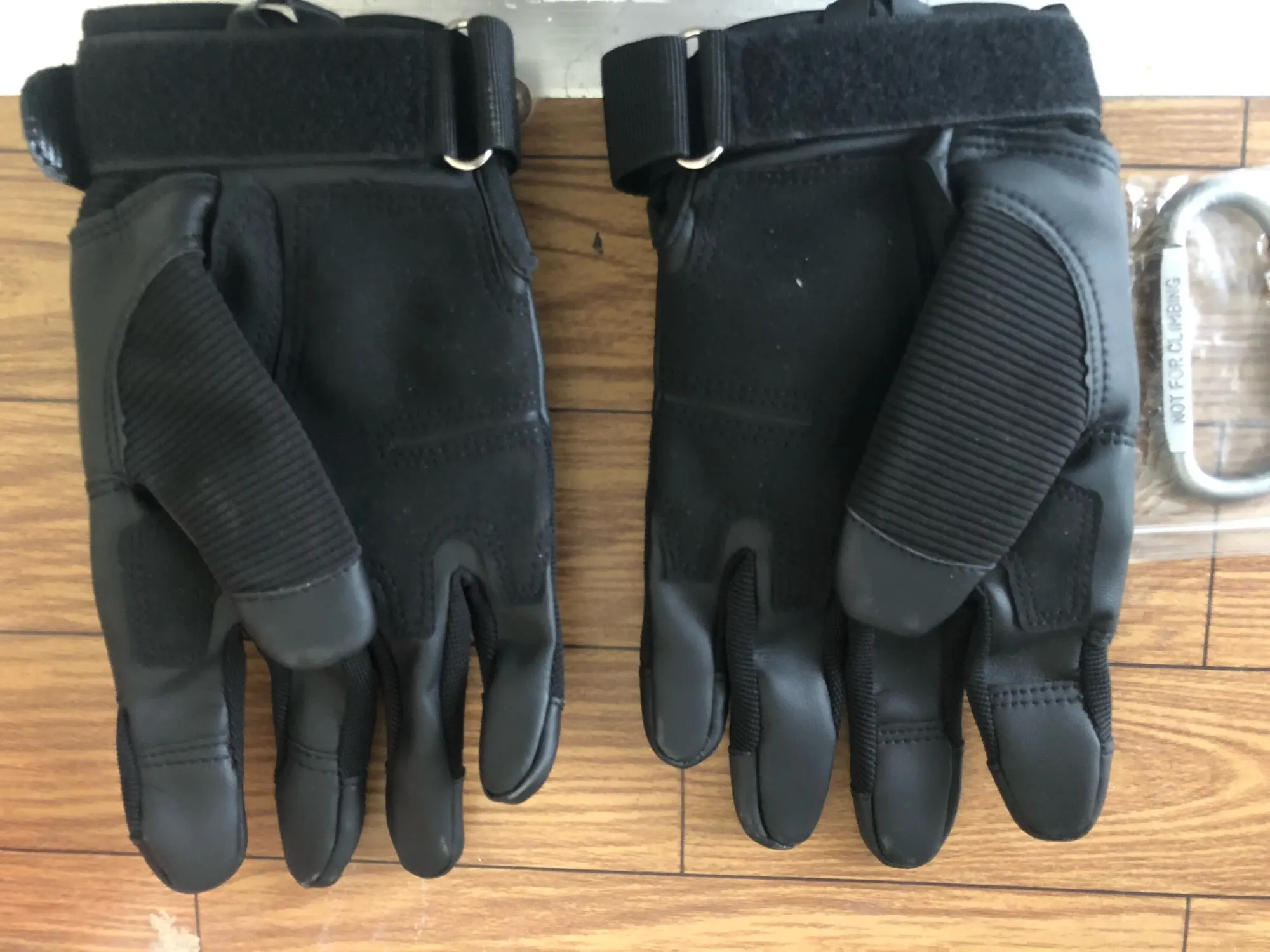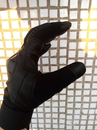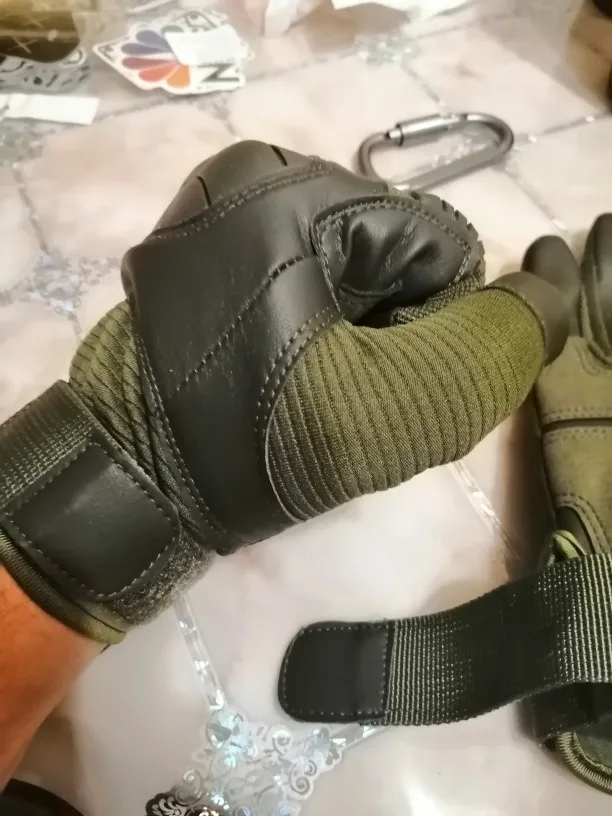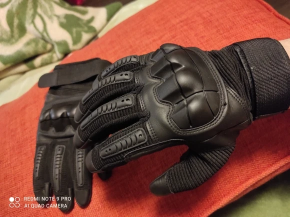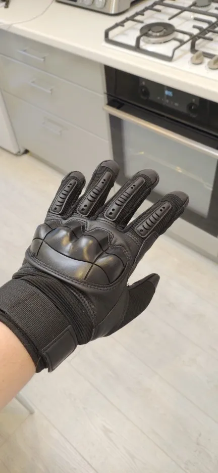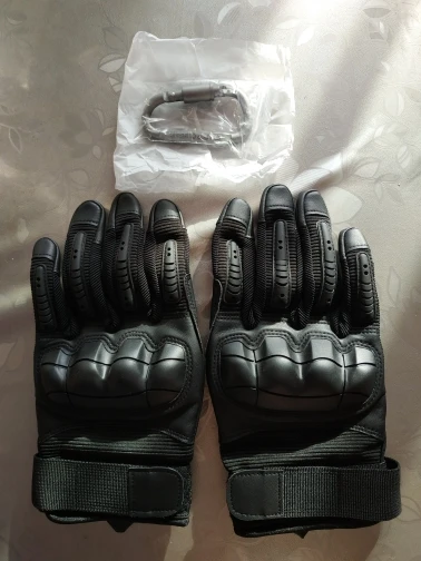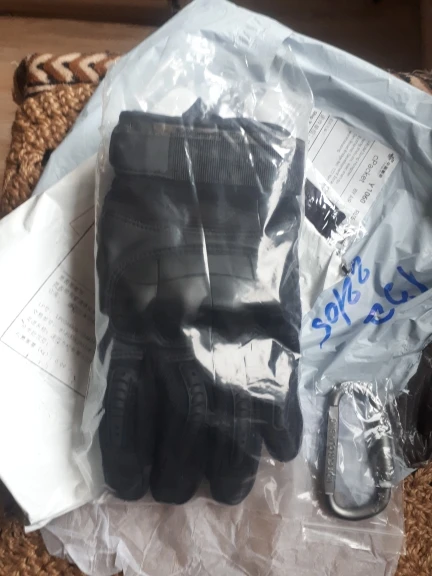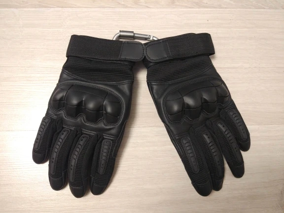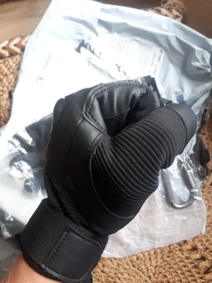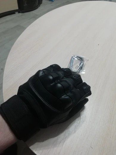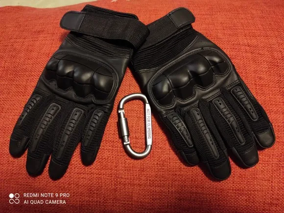 Перчатки прикольные качество на вид неплохое,не кожа конечно но с виду качественный дермантин,сидят на руке отлично брал ХL обхват ладони 23.5 средний палец 8.5 с размером угадал,карабин в подарок доставка 18 дней до Полтавы.