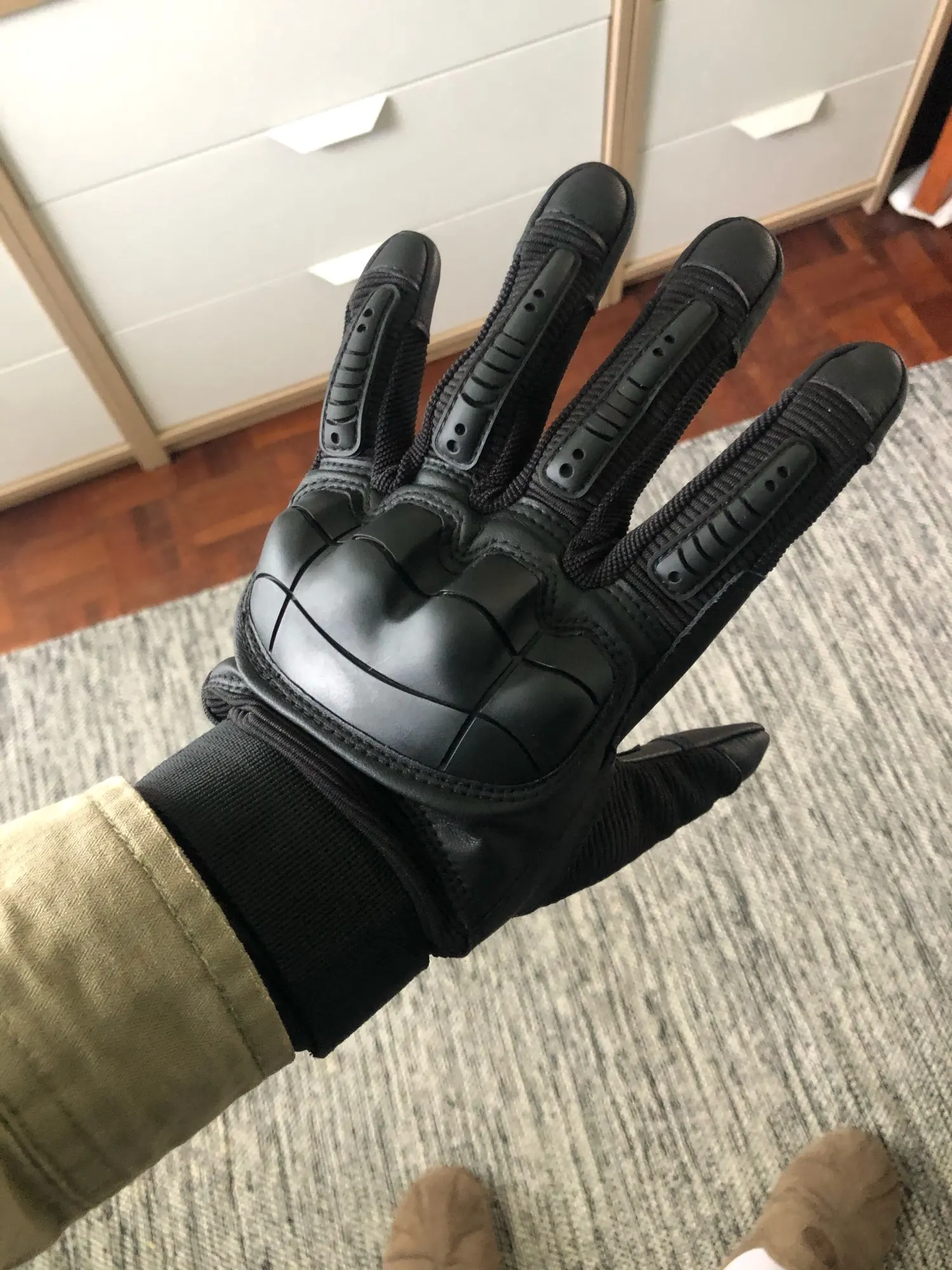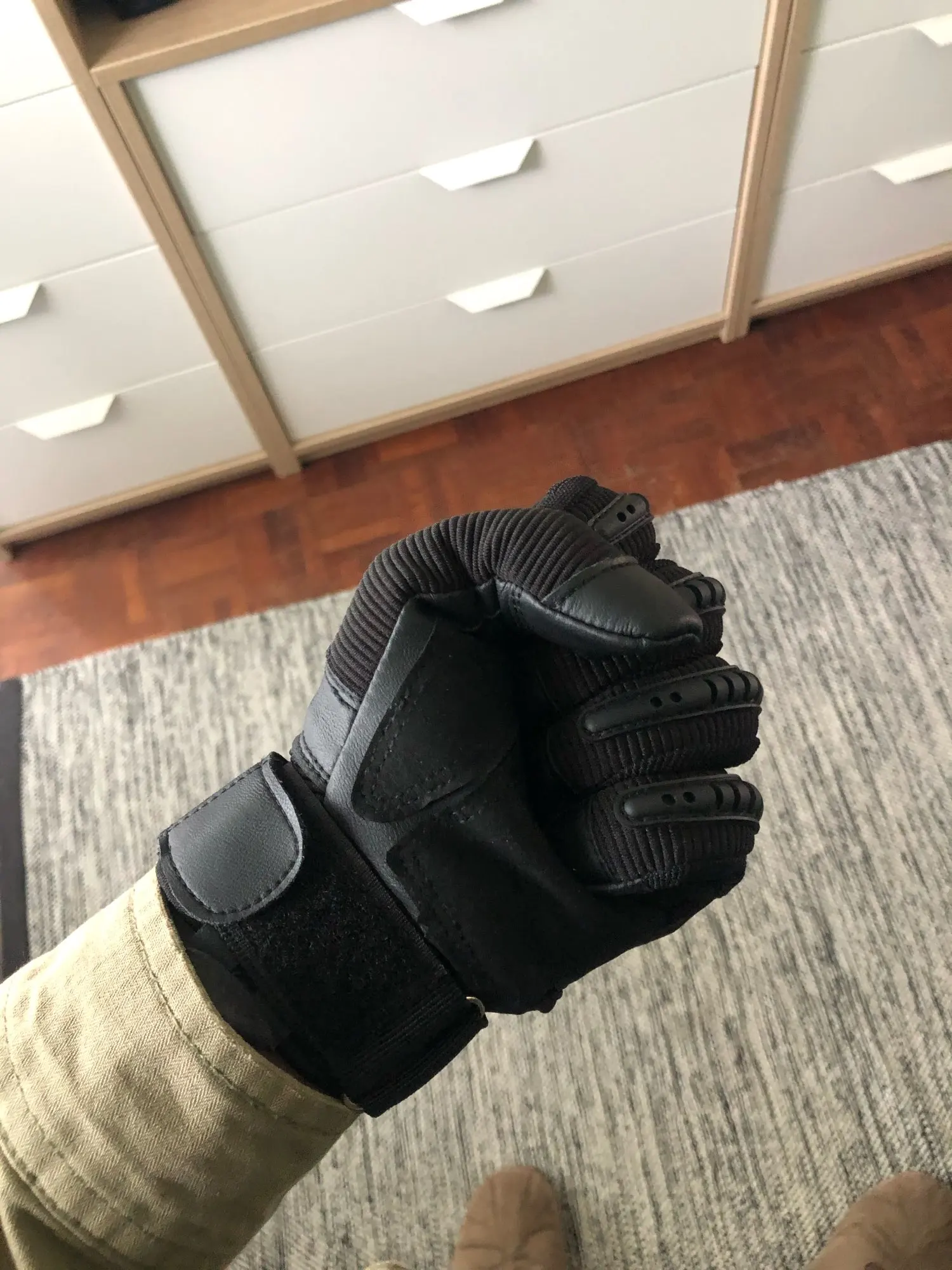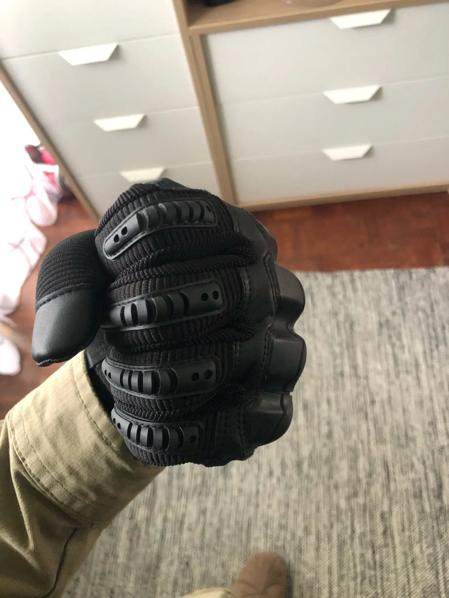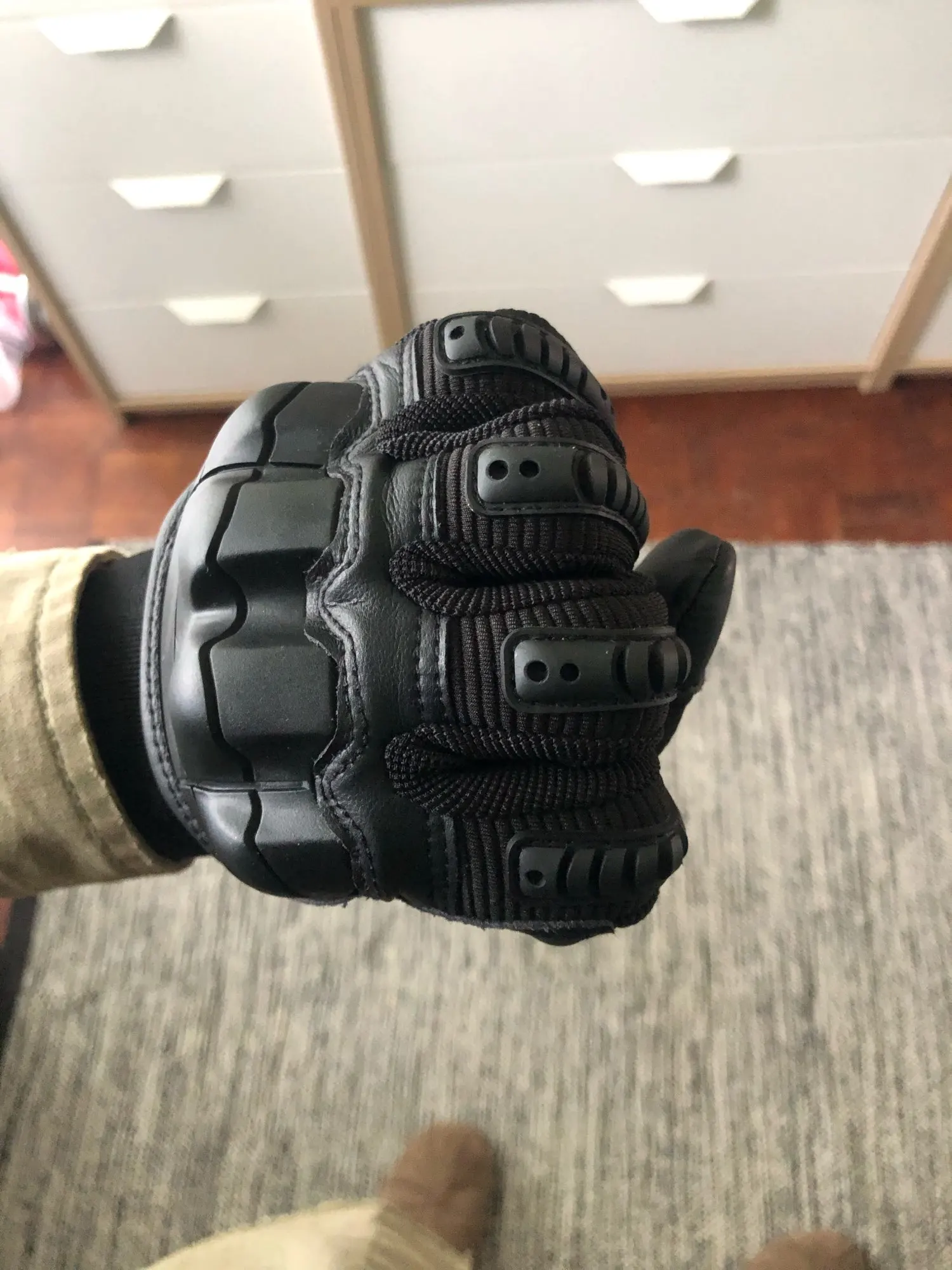 Мне понравился материал перчаток, единственным исключением того, что «жесткий пластик» на самом деле не такой твердый, как ожидалось. Они все еще стоят комфорта и других материалов. Я рекомендую заказать размер выше, так как это было то, что я сделал, и они подходят мне.