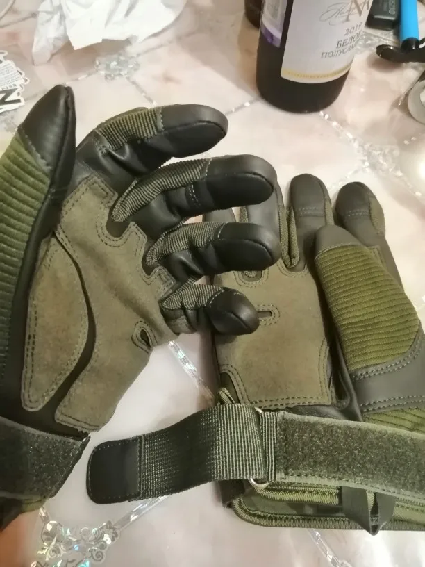 Приятно удивлён, перчатки очень хорошего качества, китайского запаха нет пахнут кожей, очень качественно прошиты, надёжная липучка на запястье, на руке сидят идеально, в нутри мягкая подкладка, размер XL на ладонь 22-23 см. Как в литые + подарок неплохой карабин.