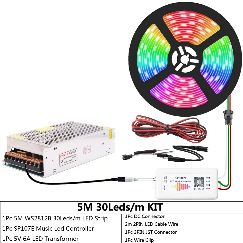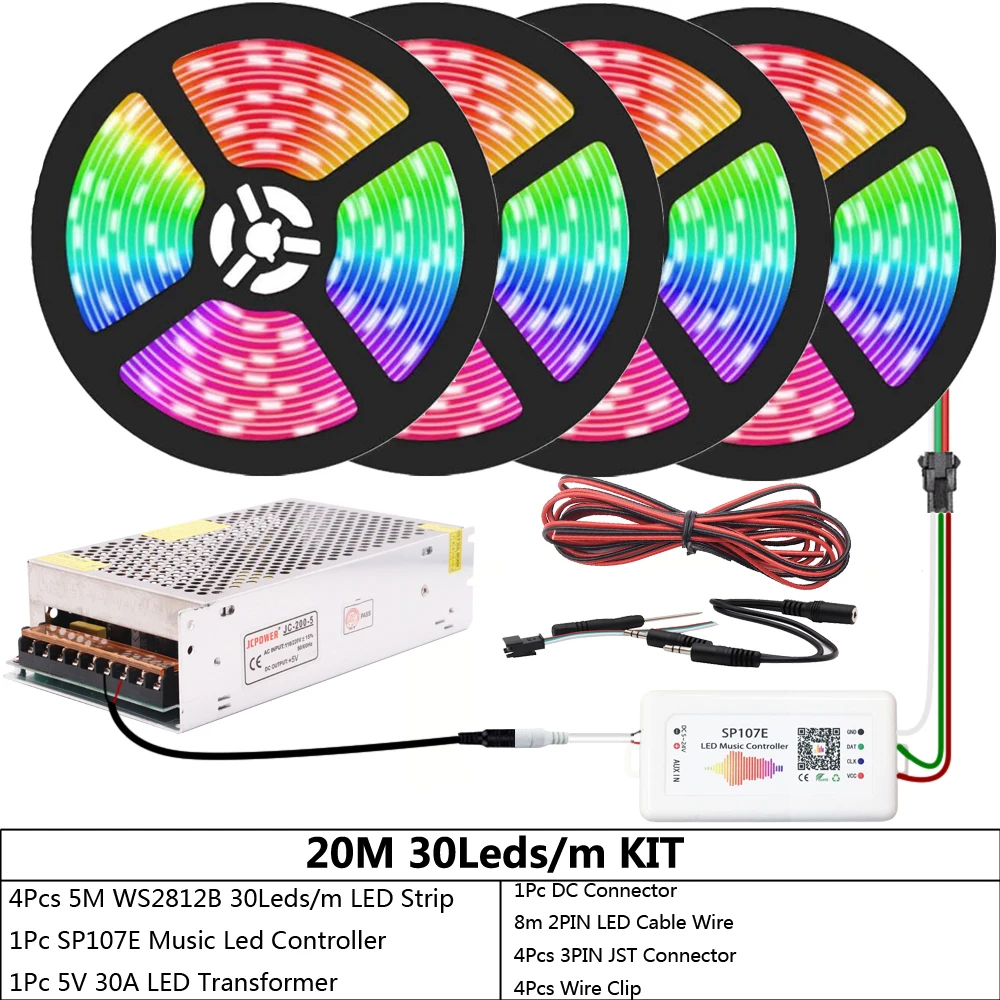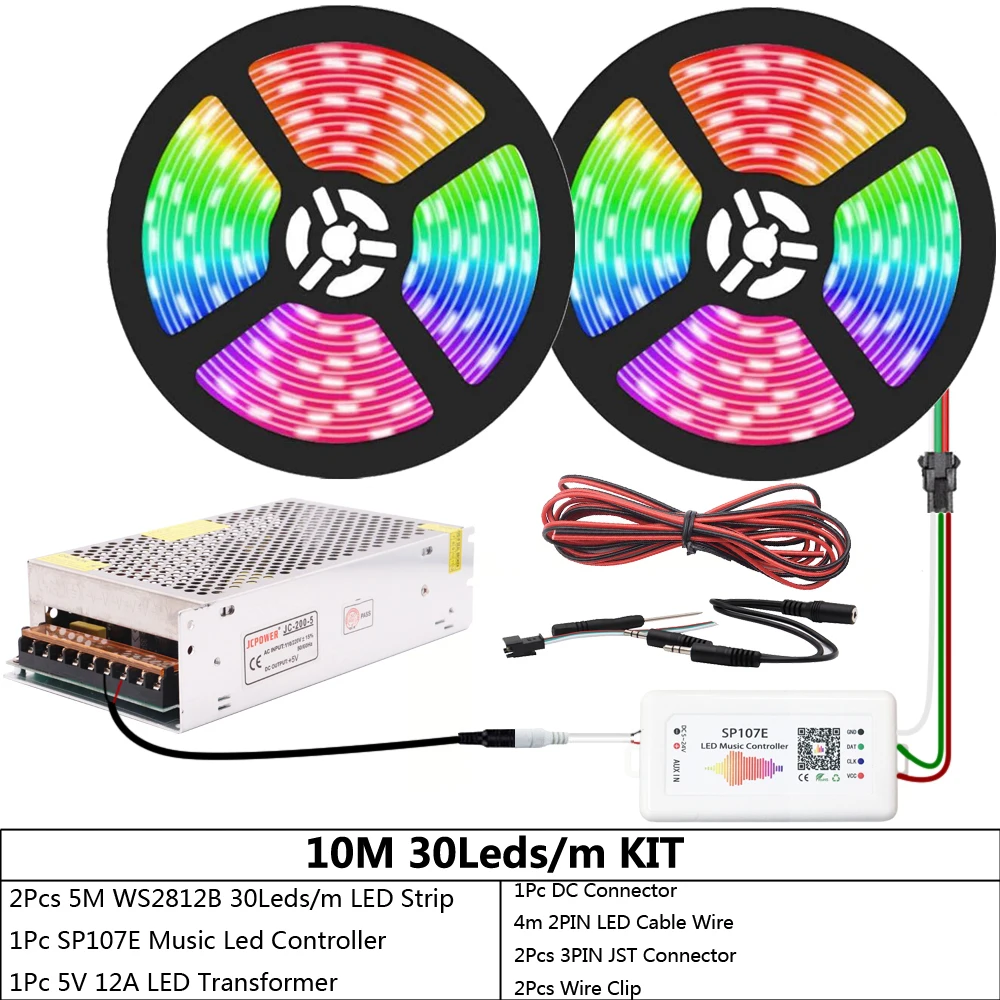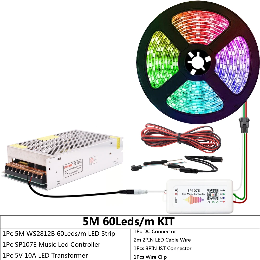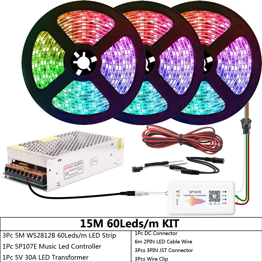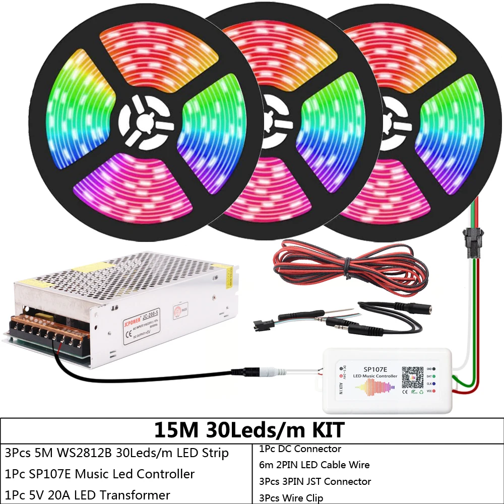 WS2812B WS2812 индивидуально Адресуемая RGB светодиодная ленсветильник SP107E Bluetooth музыкальный светодиодный контроллер DC5V Led Трансформатор комплект