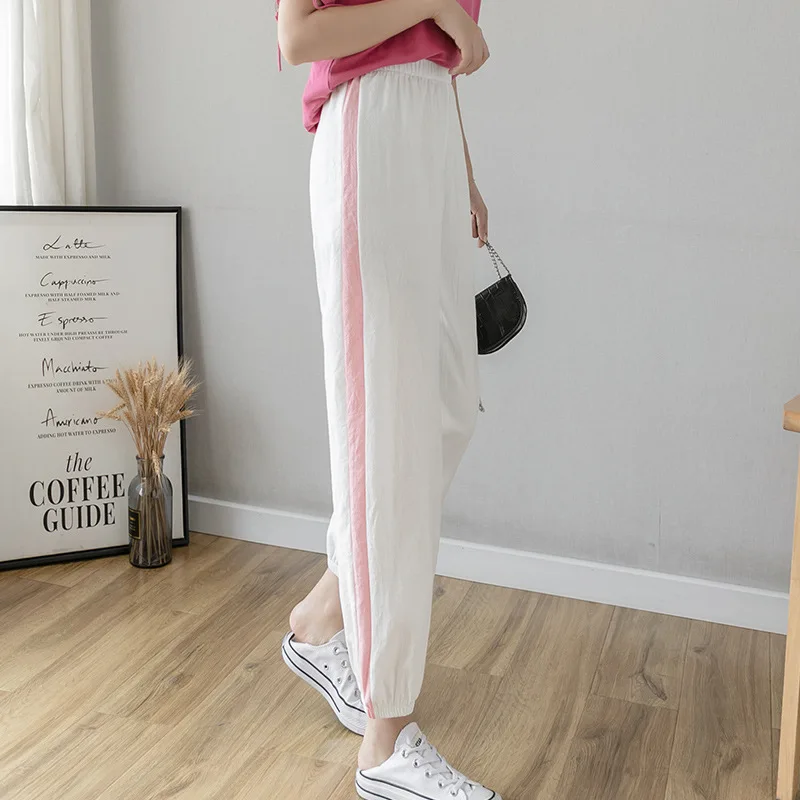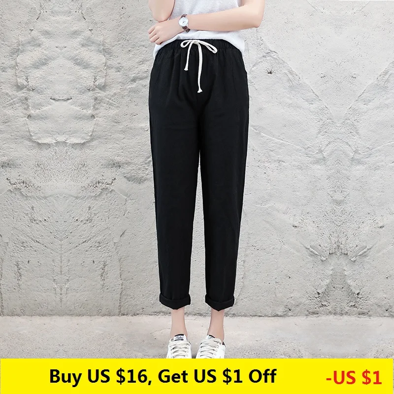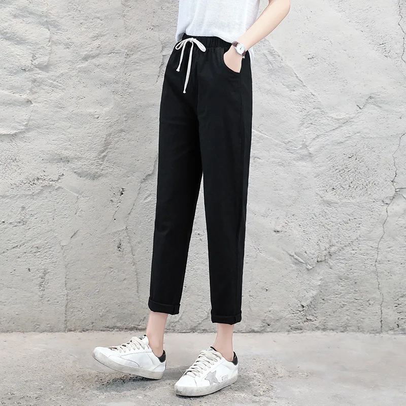 Брюки-шаровары женские, из хлопка и льна, свободные, дышащие, черные