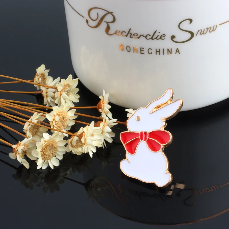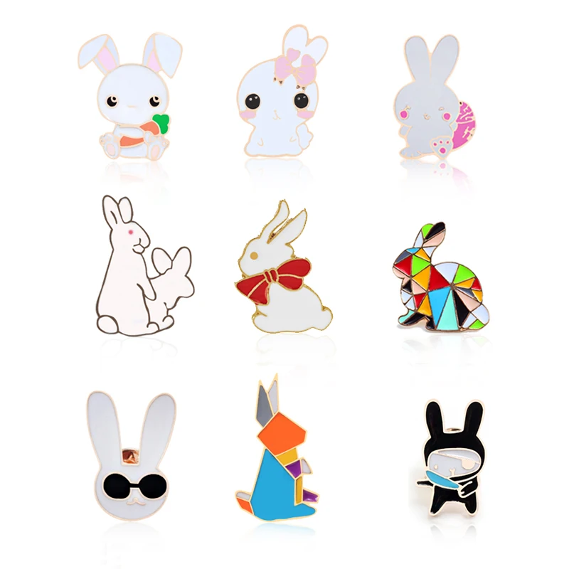 МужскаяЖенская металлическая брошь в виде кролика, с эмалью