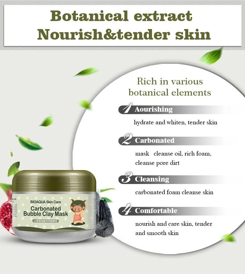 Ботанический экстракт питает и питает нежную кожуБогатый различными ботаническими элементами1 питательный увлажняющий и отбеливающий, нежная кожа2 газированная маска Очищает Масло, густую пену, очищает поры от грязи3 Очищающая газированная пена очищает кожу4. Комфортное питание и уход за кожей, нежная и гладкая кожа