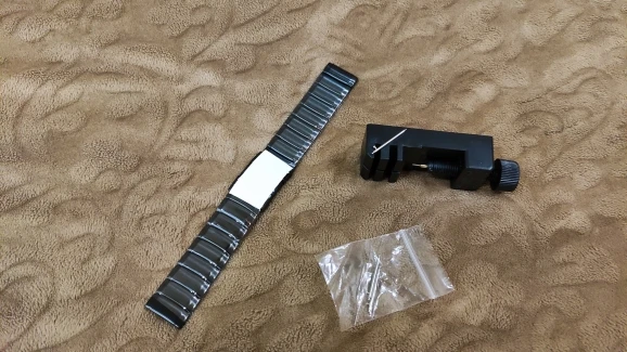Товар качественный, дошёл в Киев за 2 недели. Доволен, радует дополнительный станок для работы с браслетом и запасные 3 шильдика к часам.