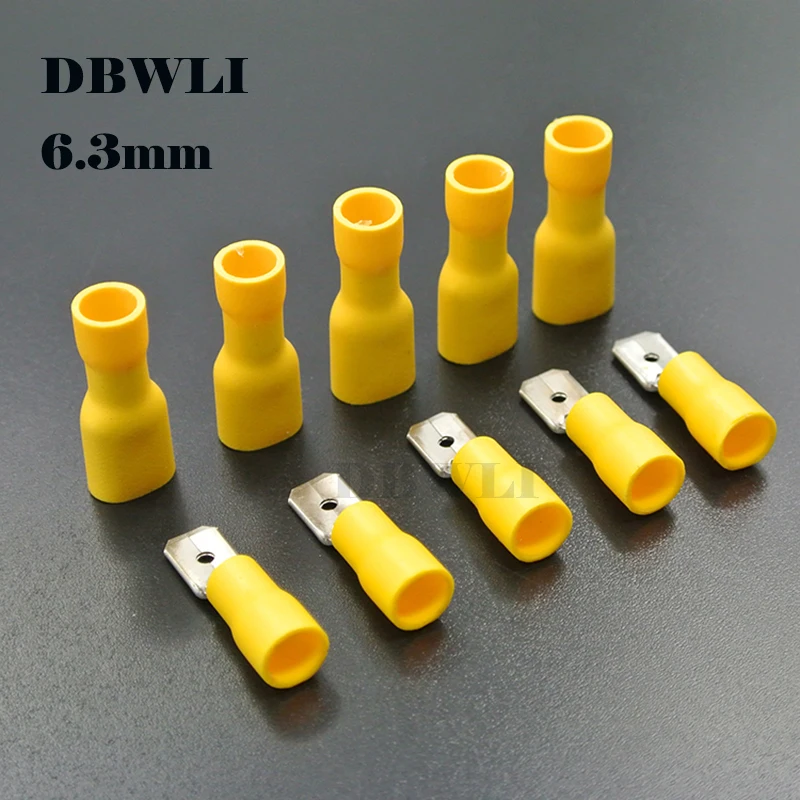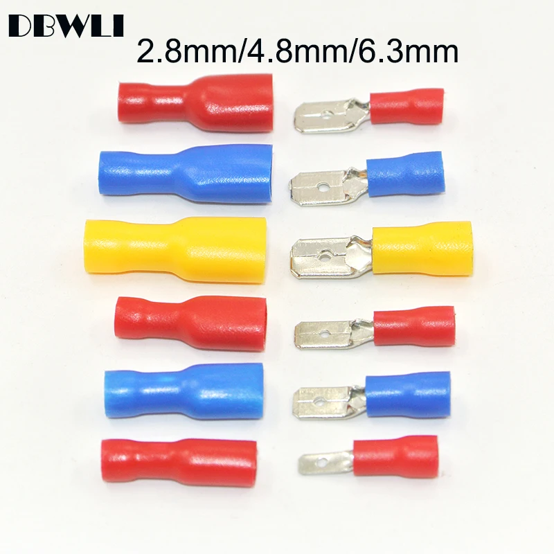100 шт., 50 пар, 2,8 мм, 4,8 мм, 6,3 мм, гнездовой, электрический соединитель проводки ОБЖИМНАЯ Изолированная клемма, лопата, FDFD2-250, MDD2-250