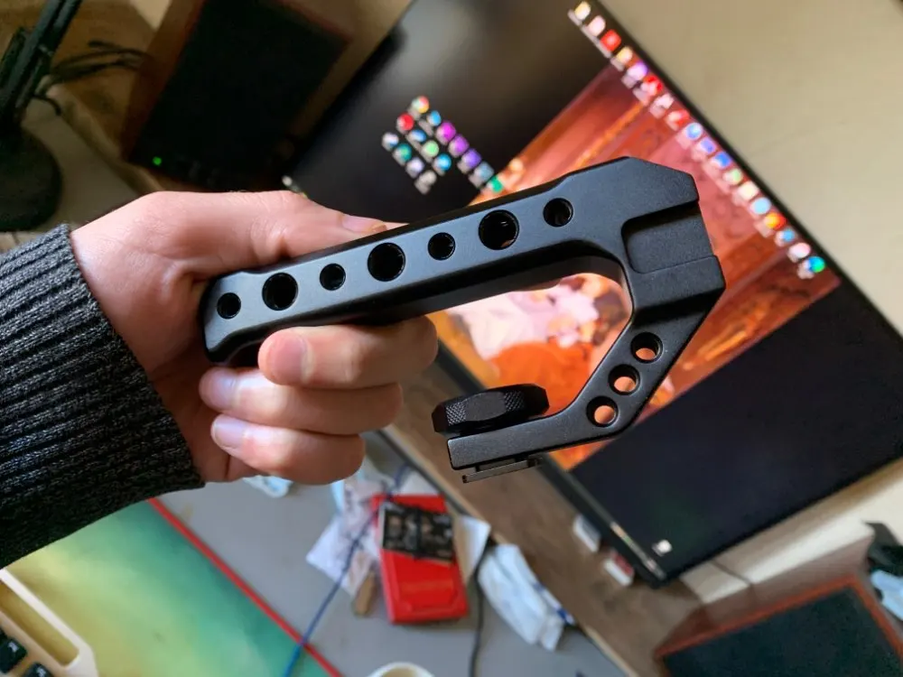 Очень хорошая ручка для камеры клетки, или непосредственно к обуви камеры. Хорошая цена и доставка!