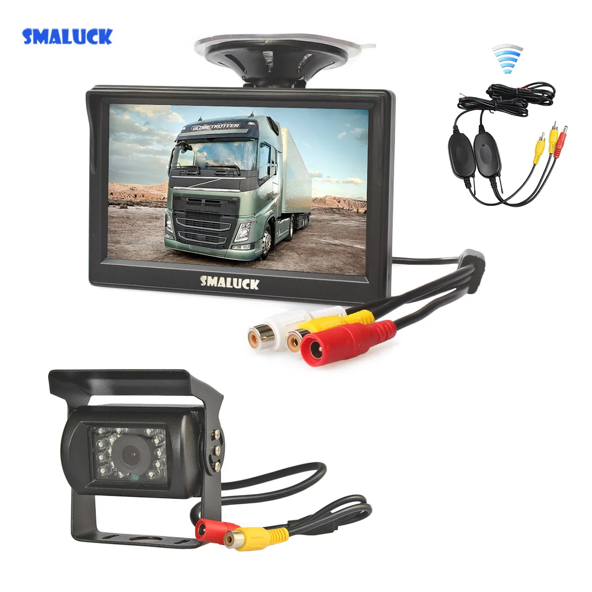 SMALUCK беспроводной 5-дюймовый ЖК-дисплей заднего вида Автомобильный Монитор водонепроницаемый CCD обратная резервная камера для автомобиля грузовика ИК Ночное Видение