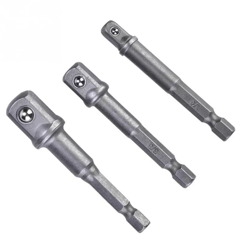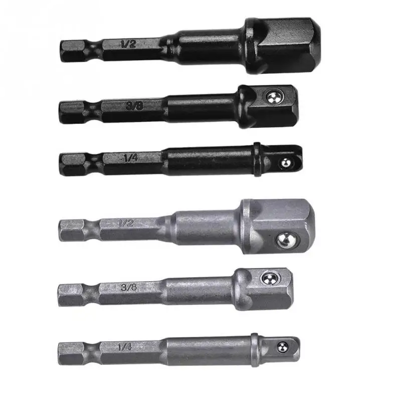 3 шт. гнездо адаптера 1/4 "с шестигранным хвостовиком на 1/4" 3/8 "1/2" квадратная головка сверло драйвер черный серебристый опционально