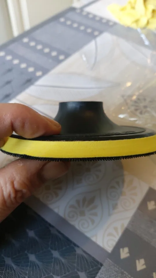 Взял для шлифовки кафельной плитки черепашки разной зернистости на пробу 100, 150 и 300 и в придачу липучку присоску к ним. Крепятся черепашки к ней на липы. Желтый ободок на присоске мягкий, играет роль демпфера. Товар качественный, рекомендую. В обычных магазинах такие не продаются, по крайней мере в Вологде я не нашел.