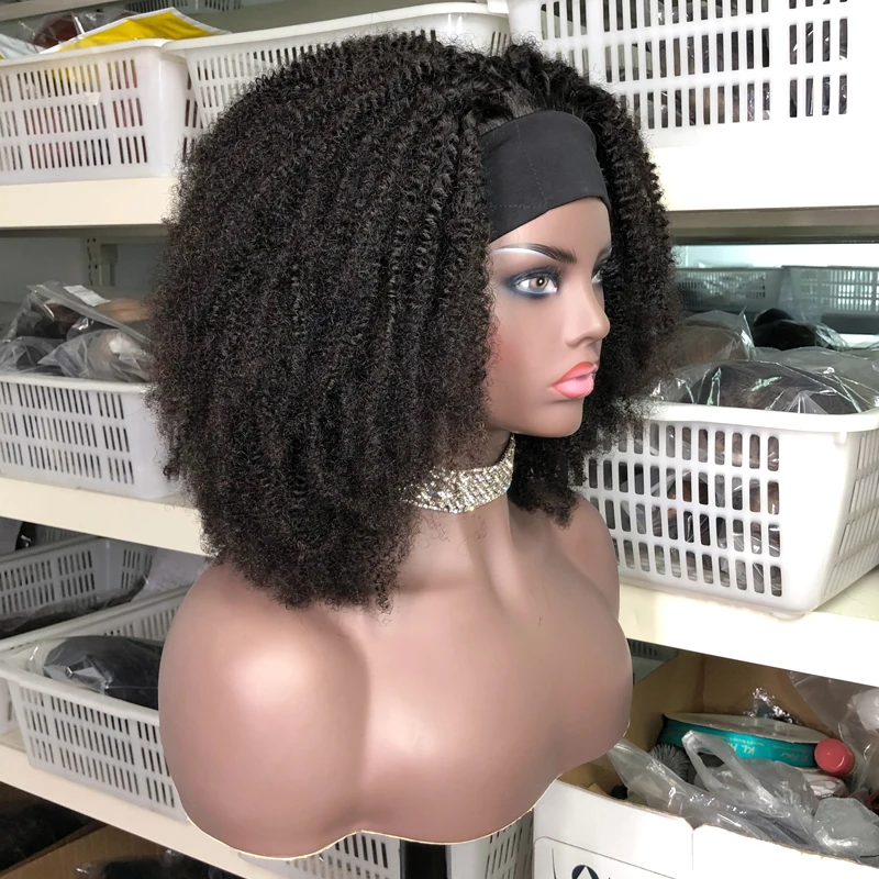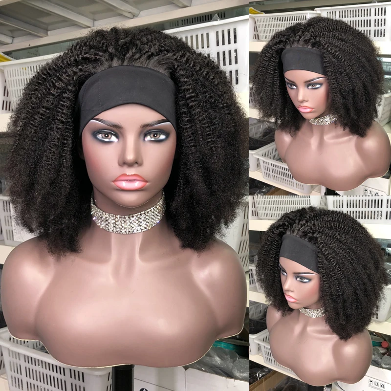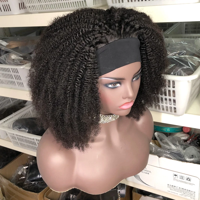 Афро кудрявые вьющиеся человеческие волосы парик с повязкой на голову