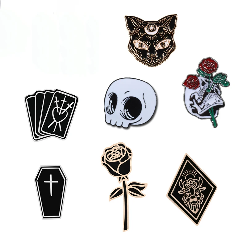 Черная брошь ведьмы, брошь для покера, гроба ведьмы, шляпы, розы, эмалированная булавка, брошь для одежды, брошь для лацкана, значок для сумки, значок для женщин и мужчин, Ювелирное Украшение, подарки