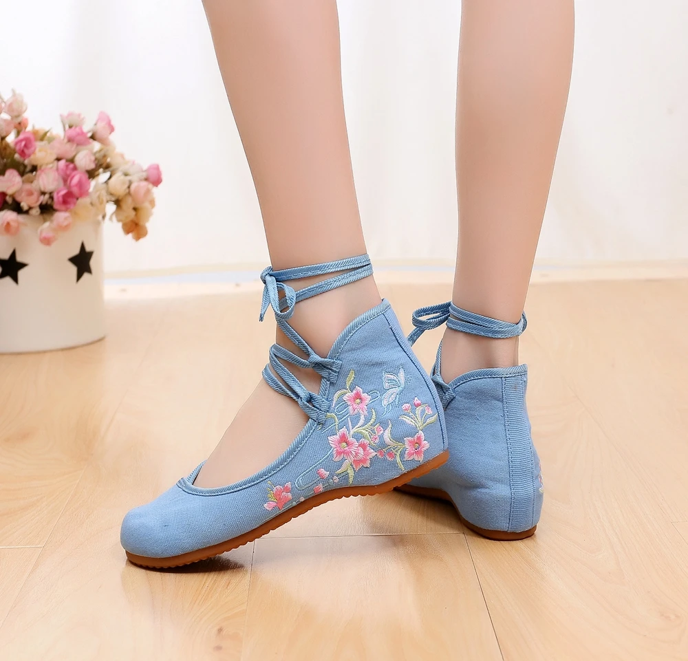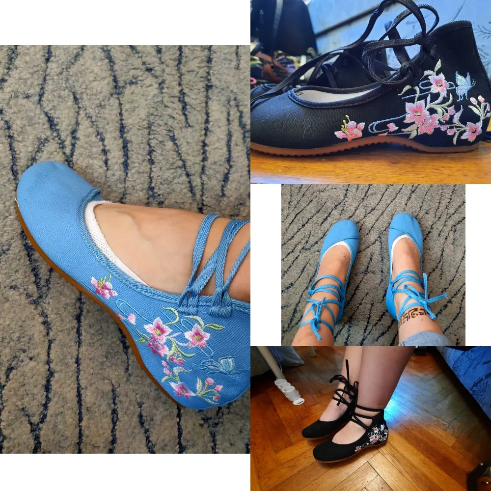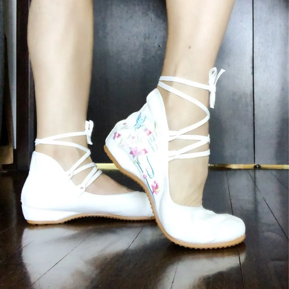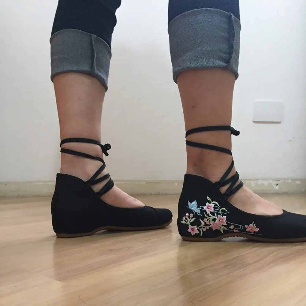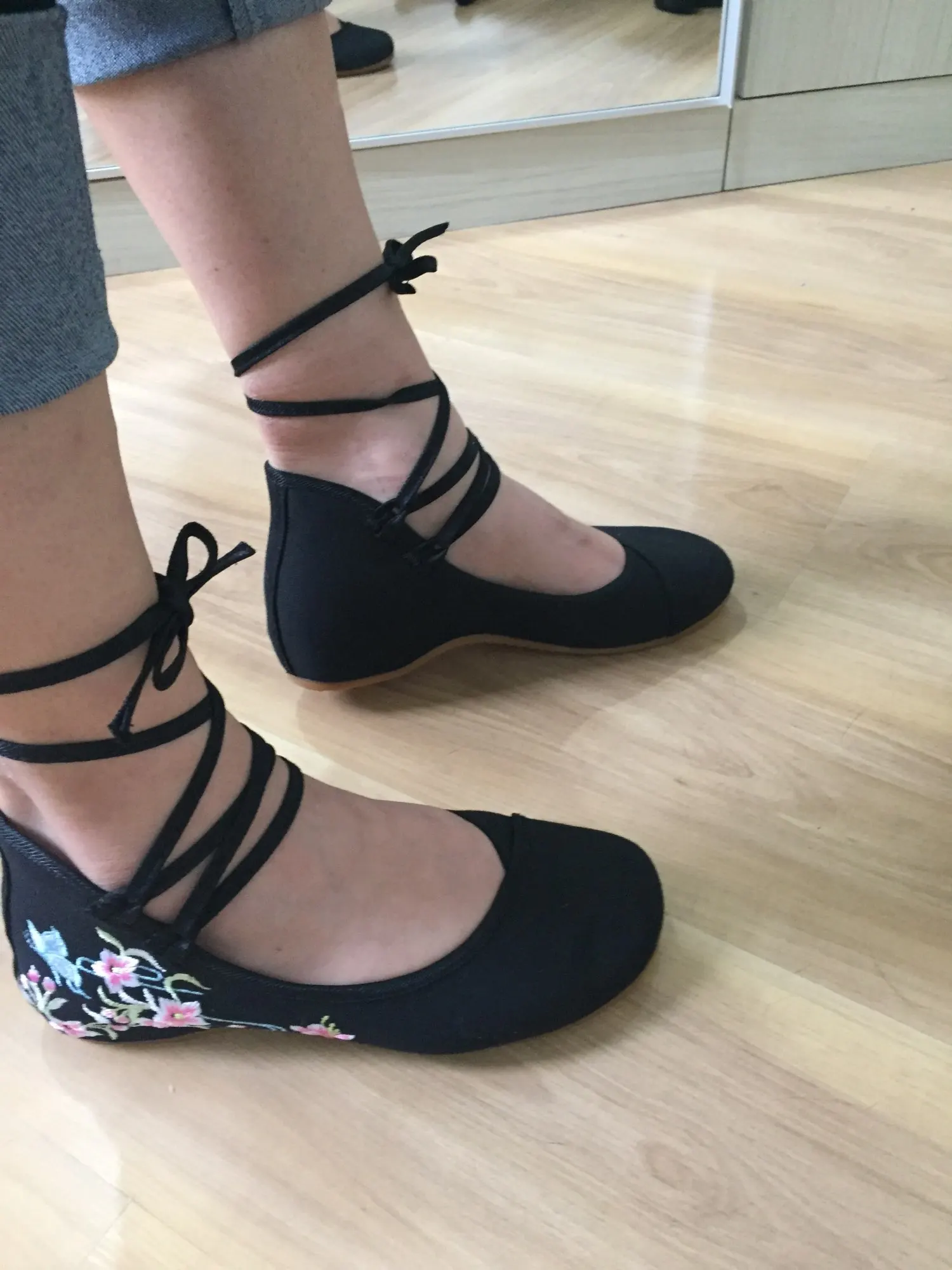 Балетки женские Veowalk хлопковые, с ремешком на щиколотке, с вышивкой